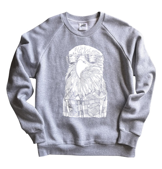Hipster Eagle in White Ink Organic Cotton Unisex Sweatshirt