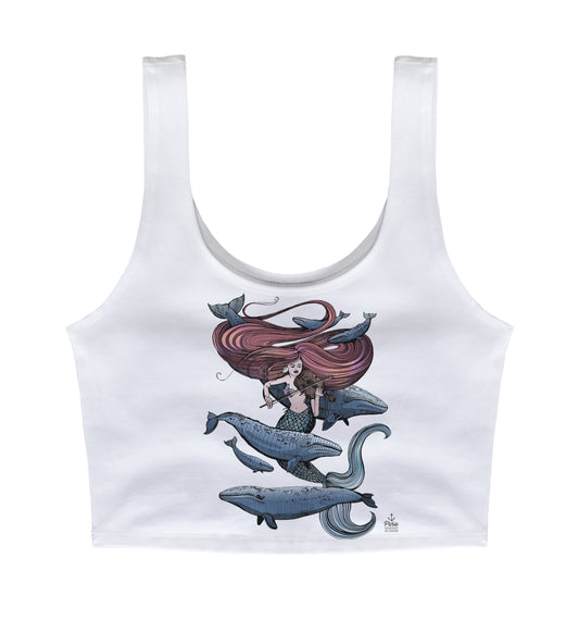 Mermaid Fiddling in Full Colour Organic Cotton Crop Tank