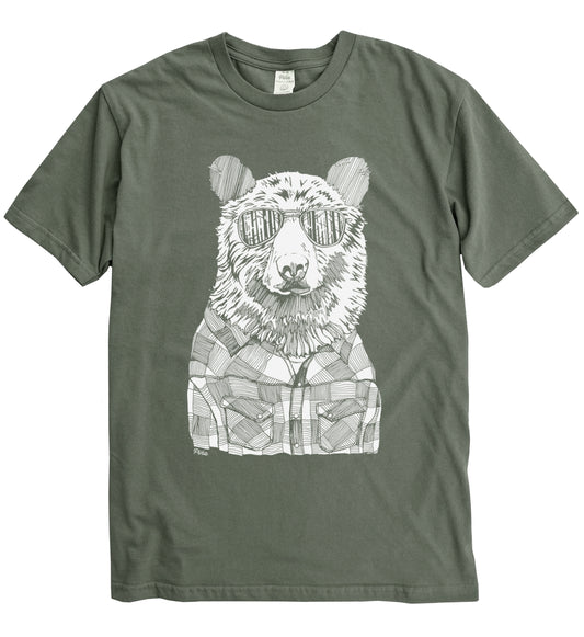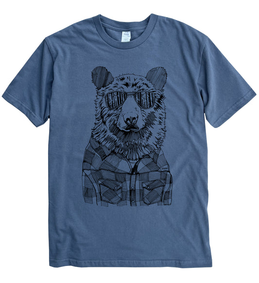 Hipster Bear in Black Ink Organic Cotton Unisex Tee