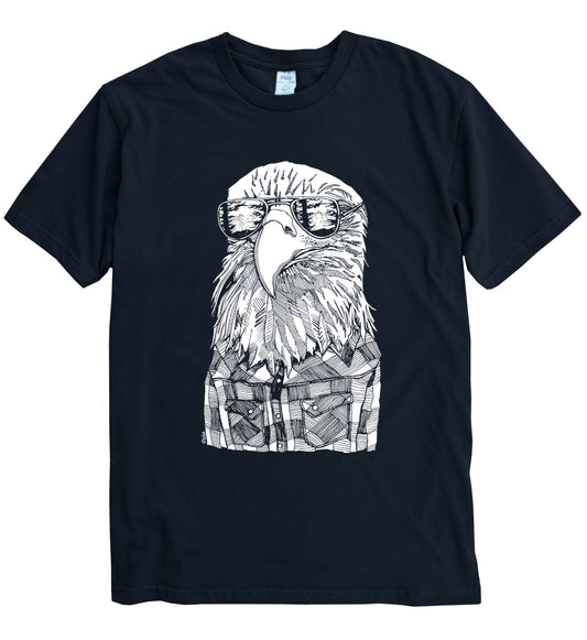 Hipster Eagle in Black Ink Organic Cotton Unisex Tee