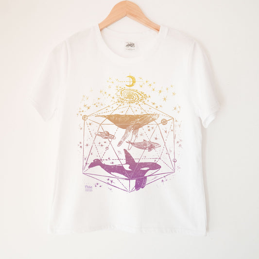 Galactic Whales in Colour Purple Gold Gradient Kennedy Lake Ladies Organic Cotton Tee