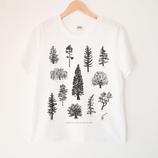 Westcoast Treeline in White Kennedy Lake Ladies Organic Cotton Tee