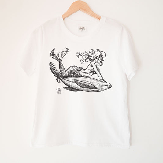 Mermaid Sealion in White Kennedy Lake Ladies Organic Cotton Tee