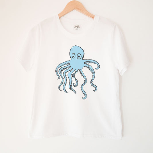 Squiggly Octopus in Blue Kennedy Lake Ladies Organic Cotton Tee