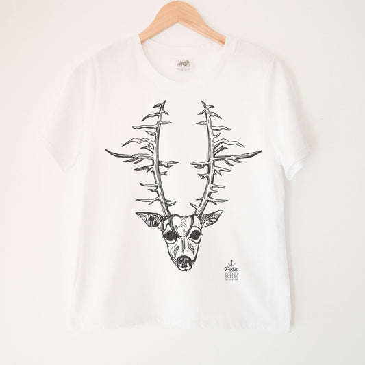 Deerhead in White Kennedy Lake Ladies Organic Cotton Tee