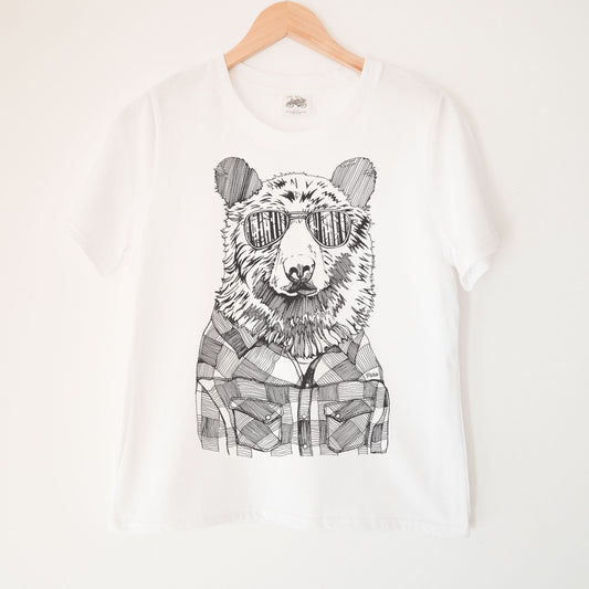Hipster Bear in Black Kennedy Lake Ladies Organic Cotton Tee