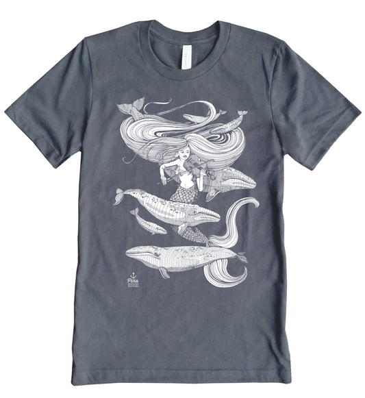 Mermaid Fiddling in White Ink Unisex Cotton Jersey Tee