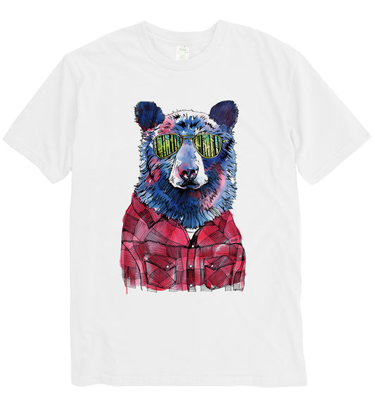 Hipster Bear in Full Colour Organic Cotton Unisex Tee