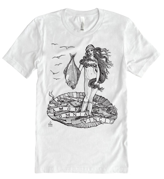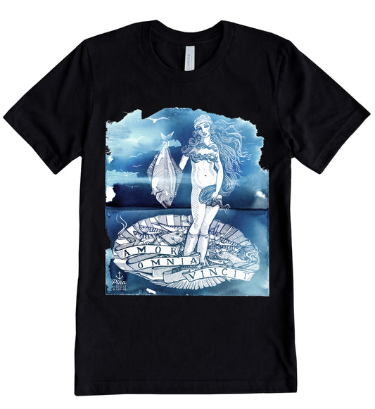 Birth of Venus in Black Ink Unisex Cotton Jersey Tee