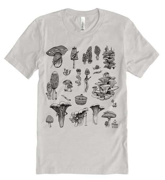 PNW Mushrooms In Full Colour Unisex Cotton Jersey Tee