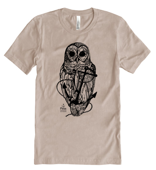 Owl and Anchor in Black Ink Unisex Cotton Jersey Tee