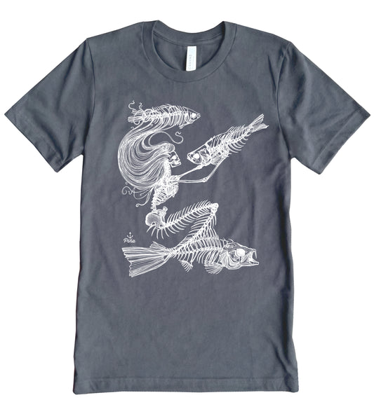 Skeleton Mermaid in Black Ink Unisex Cotton Jersey Tee