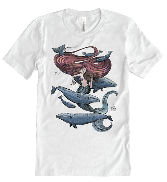 Mermaid Fiddling in Full Colour Unisex Cotton Jersey Tee