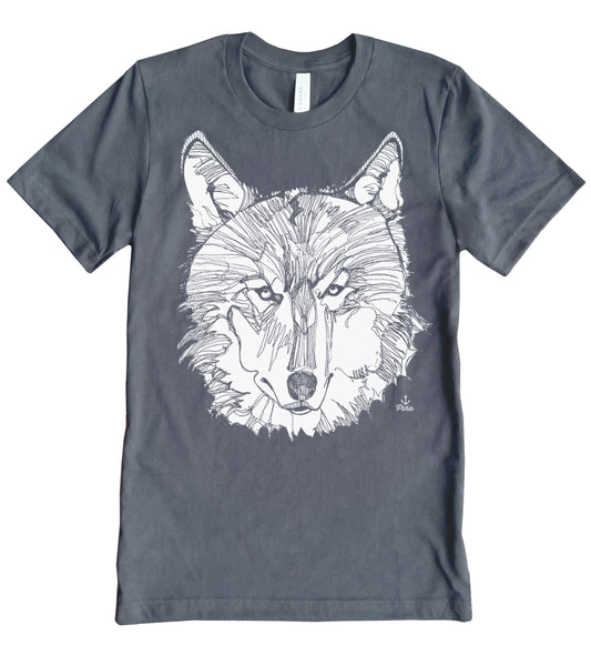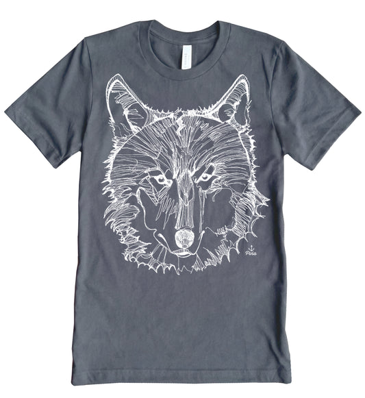 Wolf Face in Grey Unisex Cotton Jersey Tee