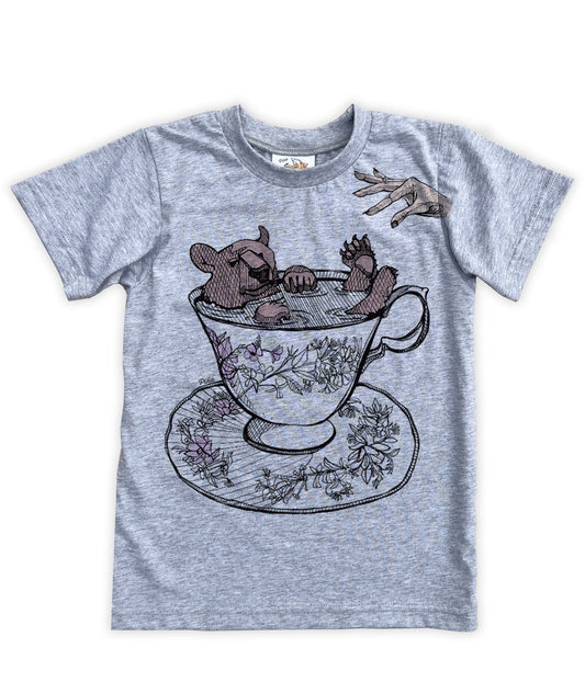 Bear in Teacup in Colour Organic Cotton Kids Tee