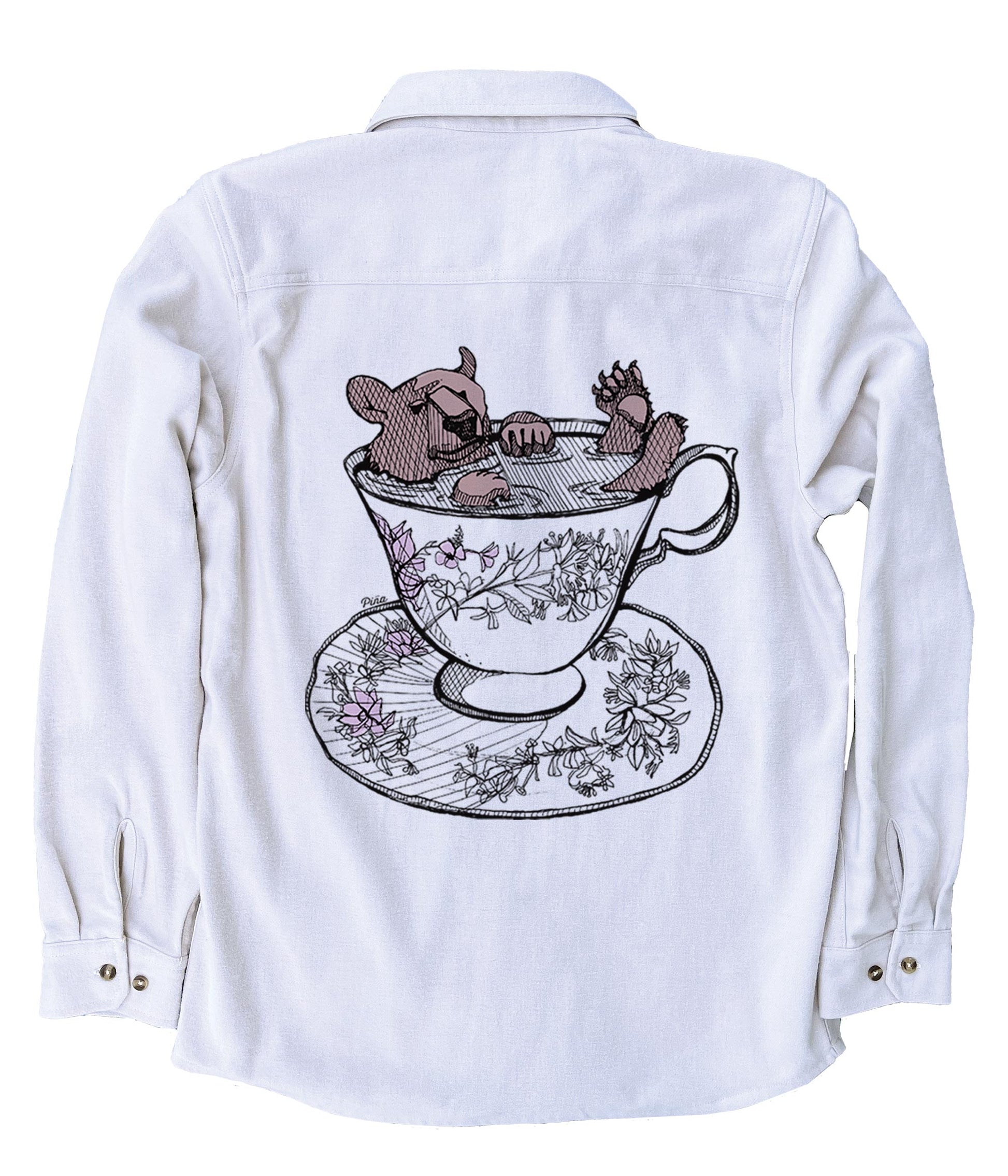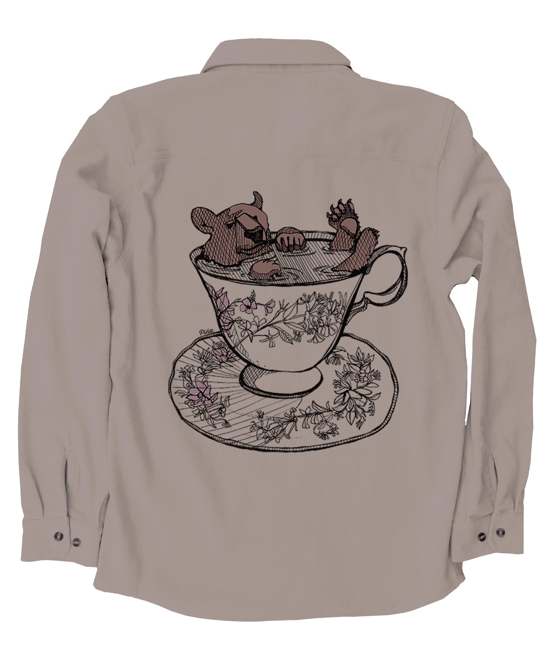 This furry fellow enjoys a steaming hot tub in a lovely cup of tea-but watch out little bear-it’s tea time! A soft and comfortable unisex flannel printed with our Bear in Teacup design in full colour with the hand on the front pocket and the bear on the back.