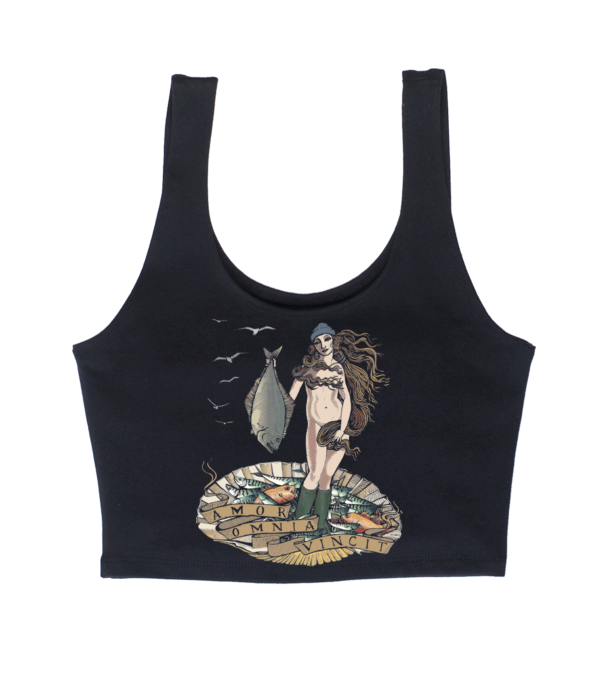This goddess of love stands amongst her bountiful catch celebrating victory and prosperity. A banner reads “Amor Omnia Vincit" meaning “Love Conquers All".