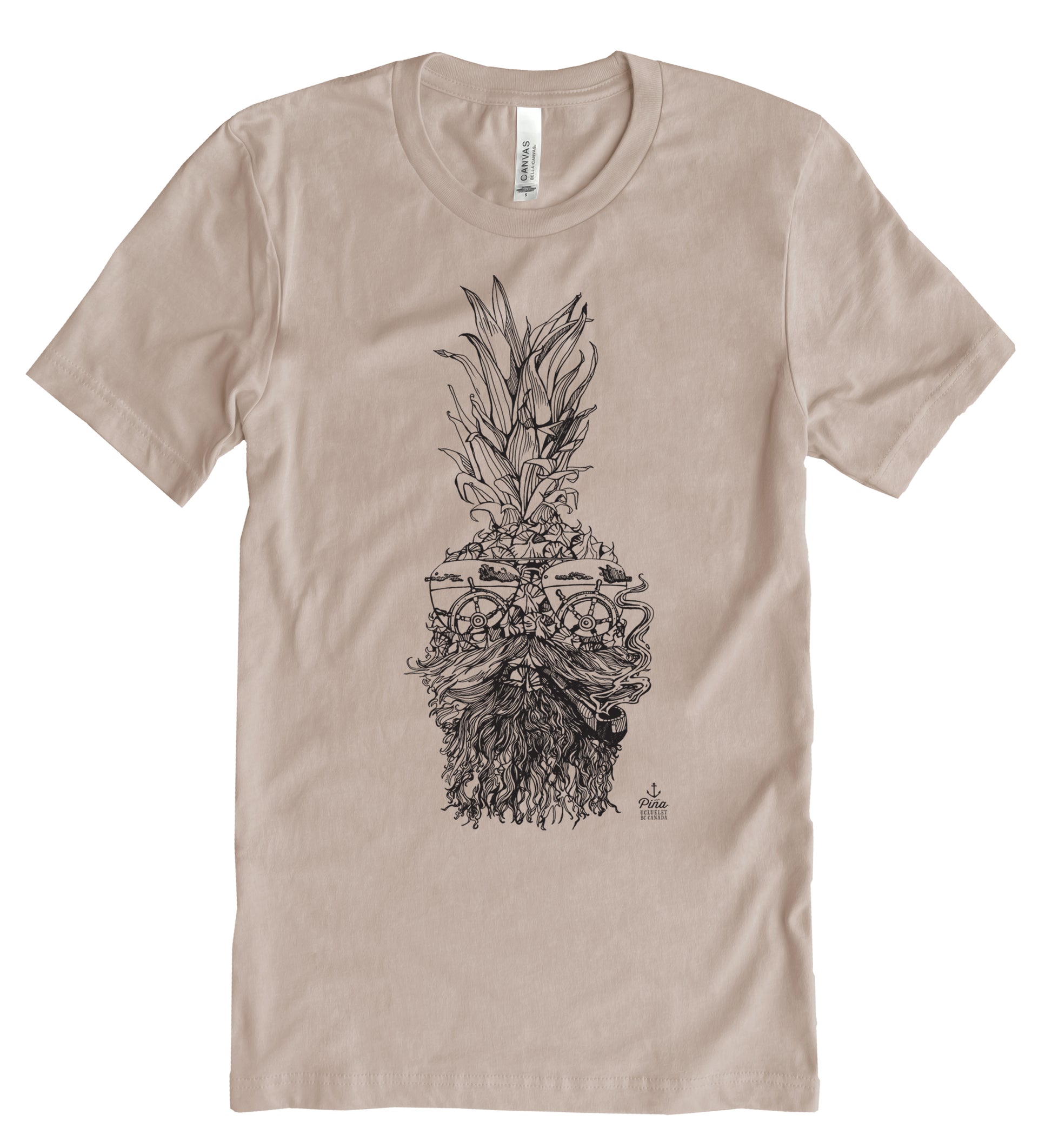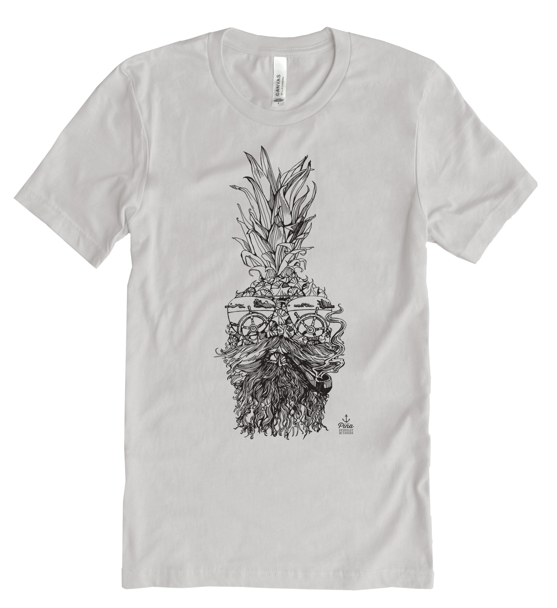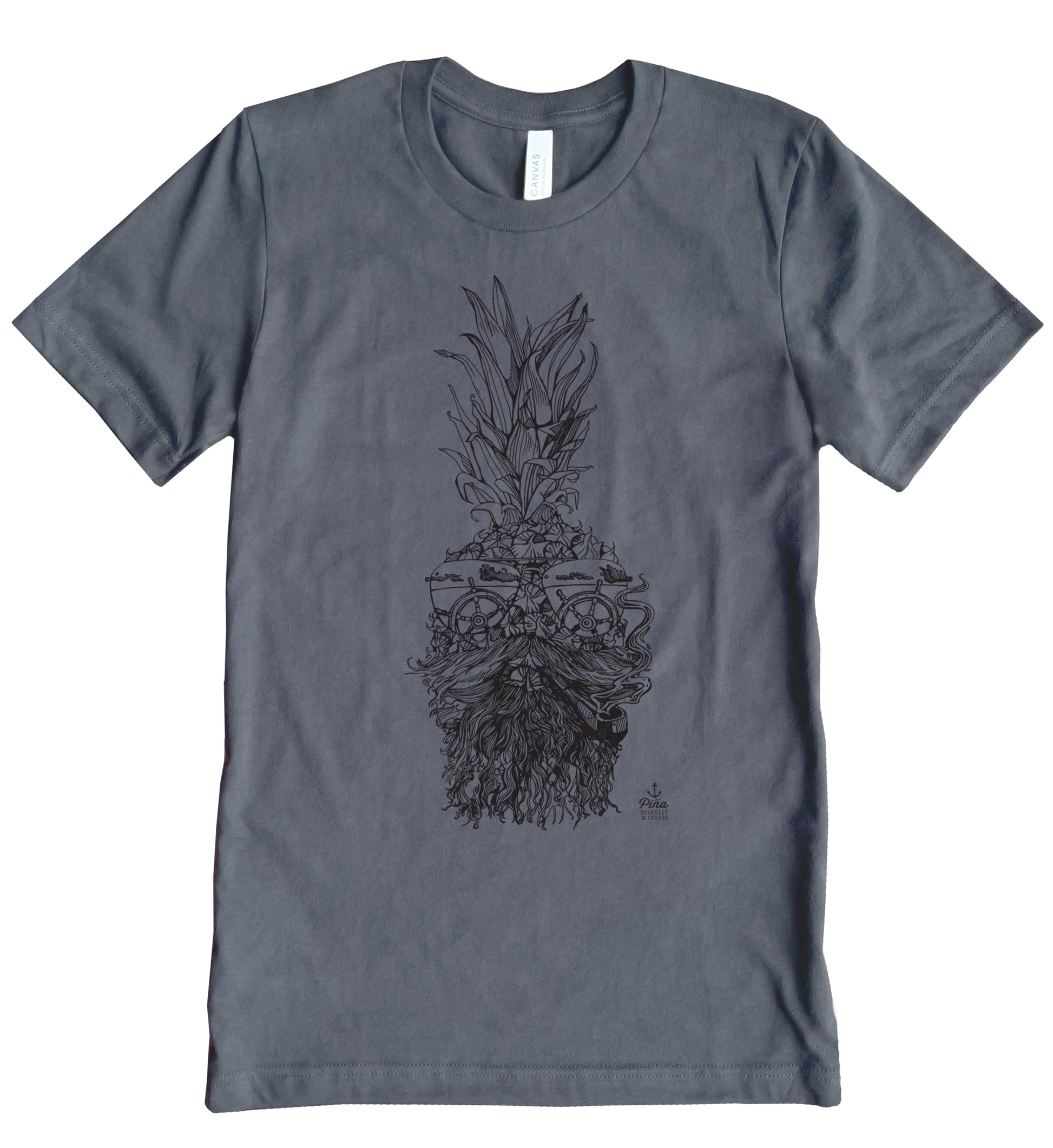 Steer your way through stormy seas with this salty old fellow. Our Captain Pina design printed in black ink on the front of a unisex, cotton jersey t-shirt. This crewneck t-shirt is soft and comfortable and made from 100% cotton. Each shirt is custom printed just for you!