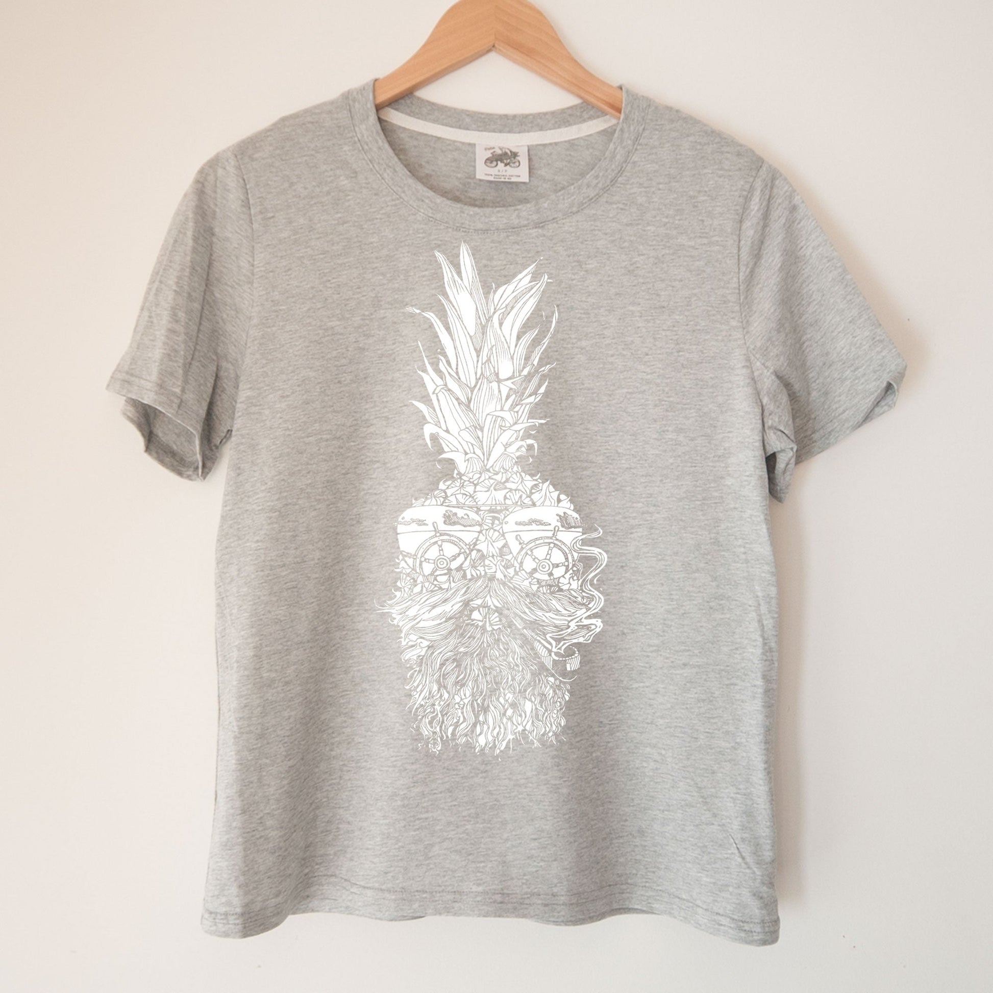 This soft and comfortable organic cotton ladies boxy tee is printed with our Captain Piña design on the front. Steer your way through stormy seas with this salty old fellow. Look closely at the smoke coming our of his pipe and you'll see a mackerel, or perhaps we've just been at sea too long.