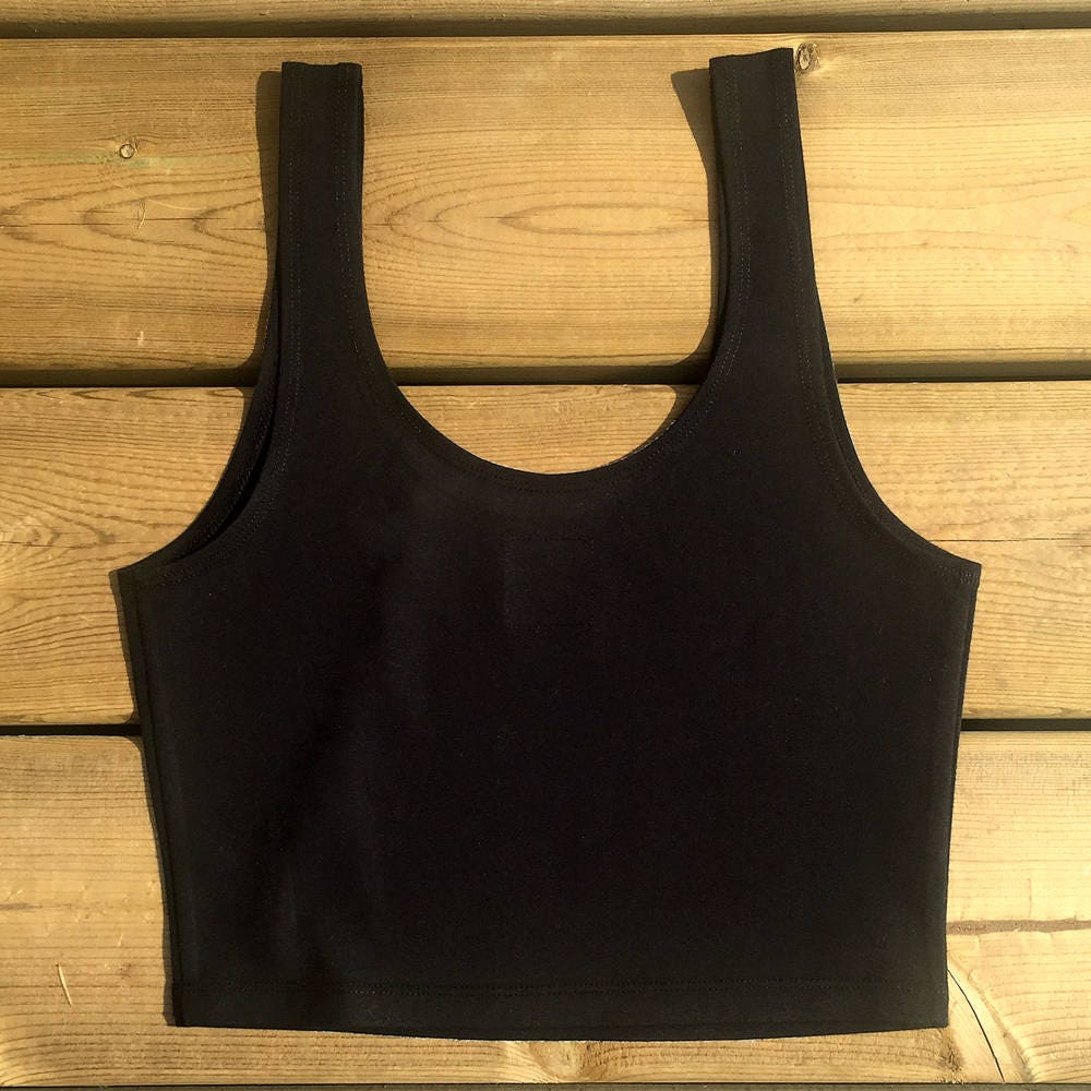 This crop top is perfect for oversized or peek-a-boo tops + looks amazing on it's own, paired with a high-waisted skirt or shorts.