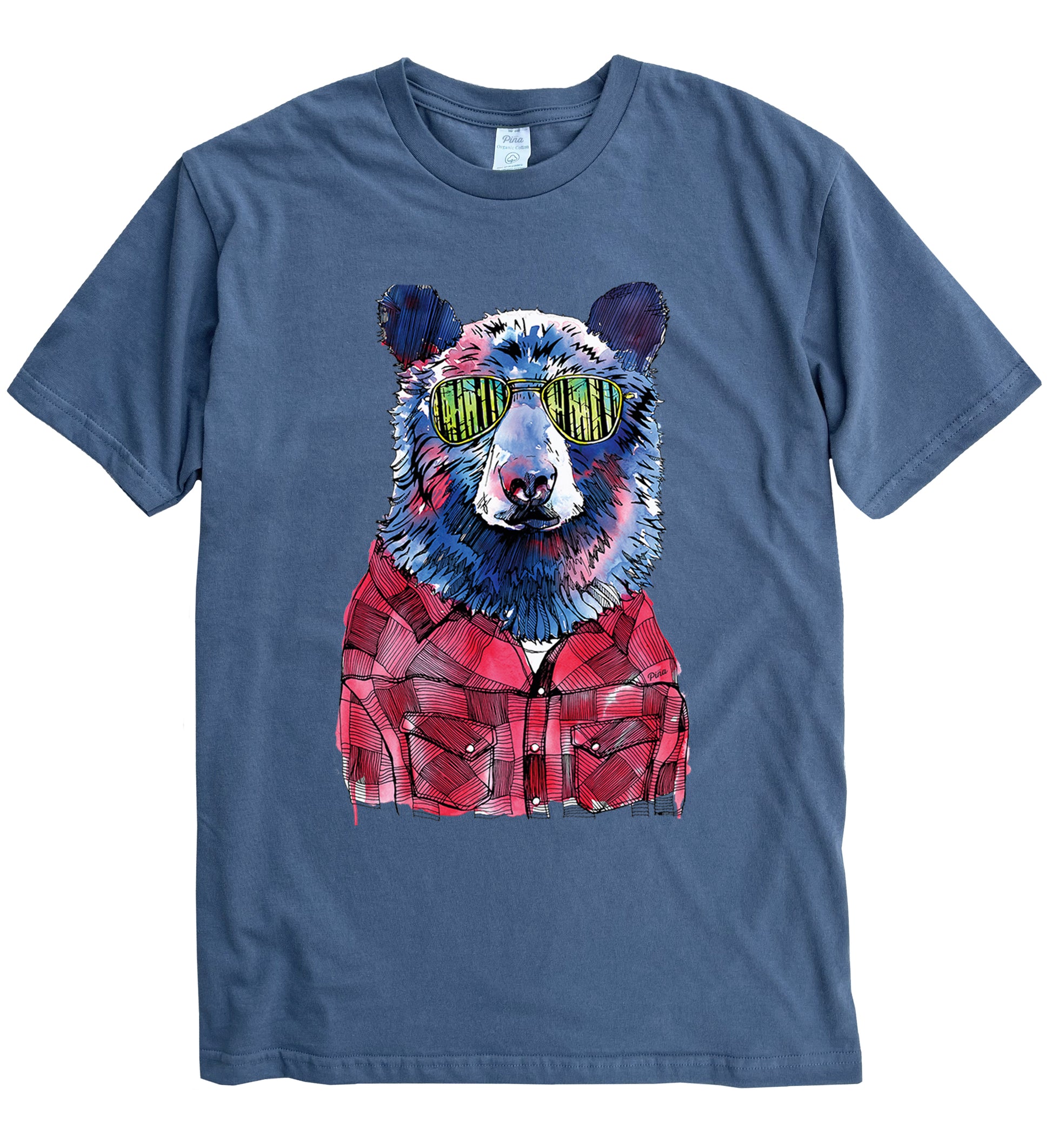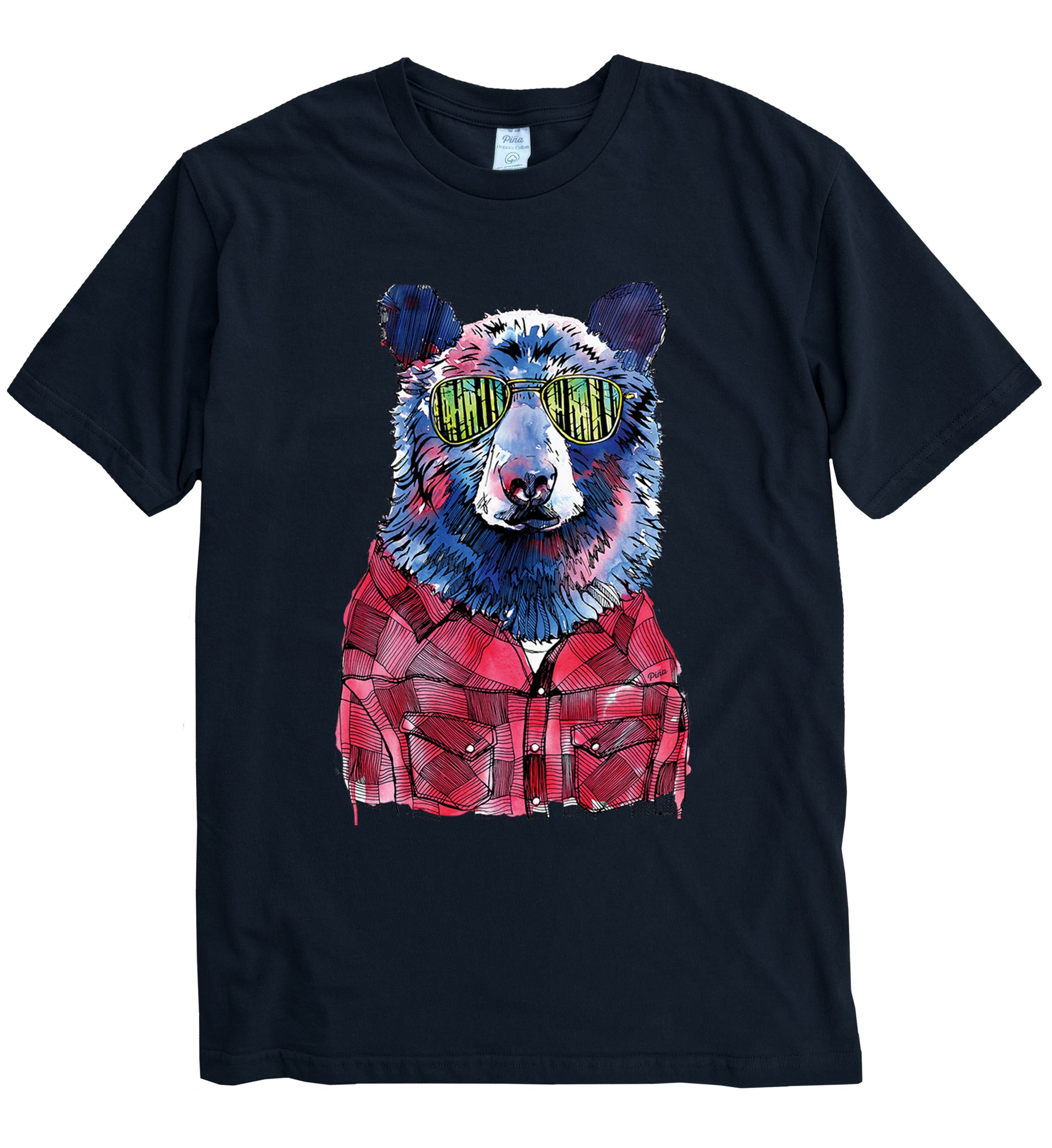 Hipster Bear in Full Colour Organic Cotton Unisex Tee