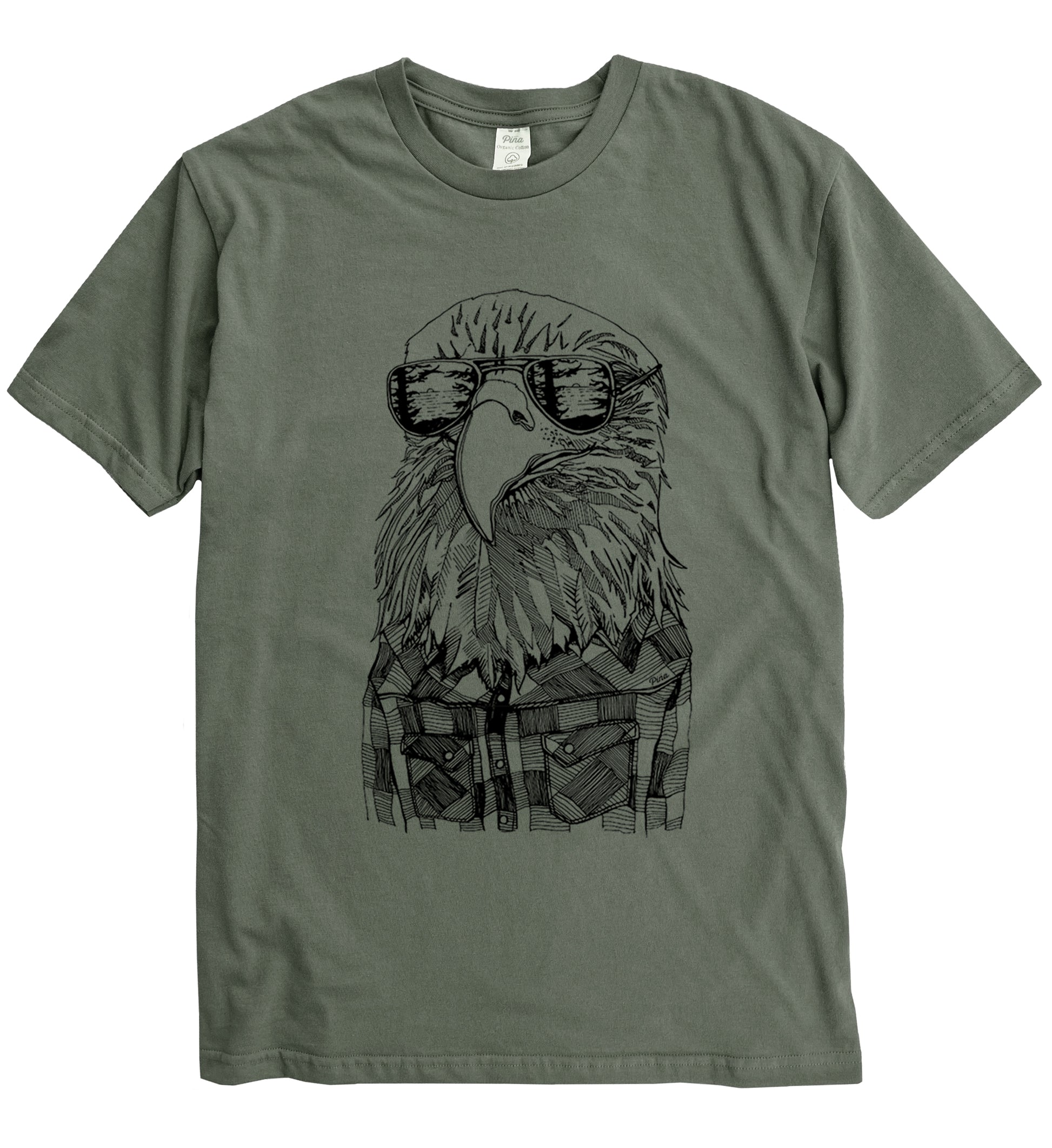 Our Hipster Eagle design printed in black ink on the front of a 100% organic cotton unisex tee. This crewneck t-shirt is soft and comfortable with a flattering fit. Each shirt is made in Canada then custom printed by us in Ucluelet, just for you!