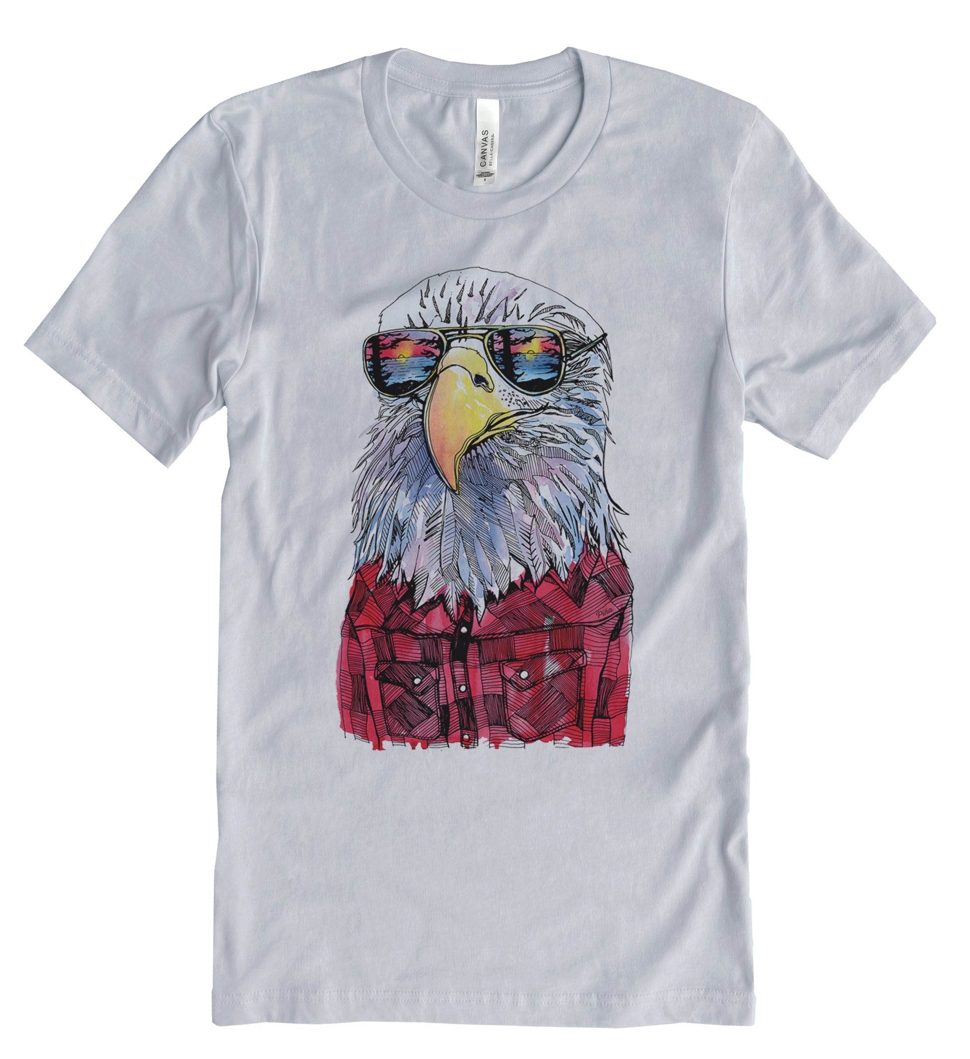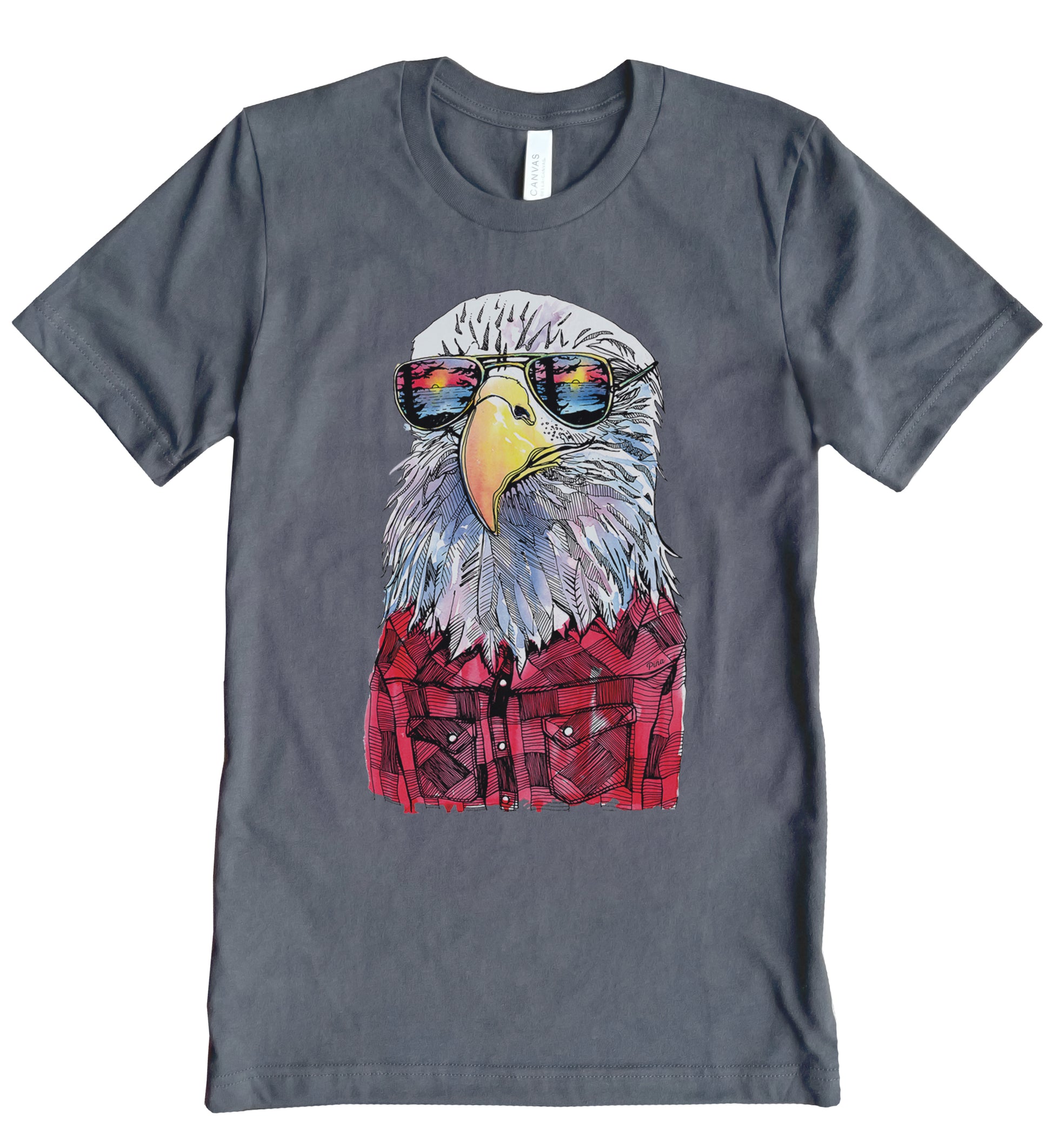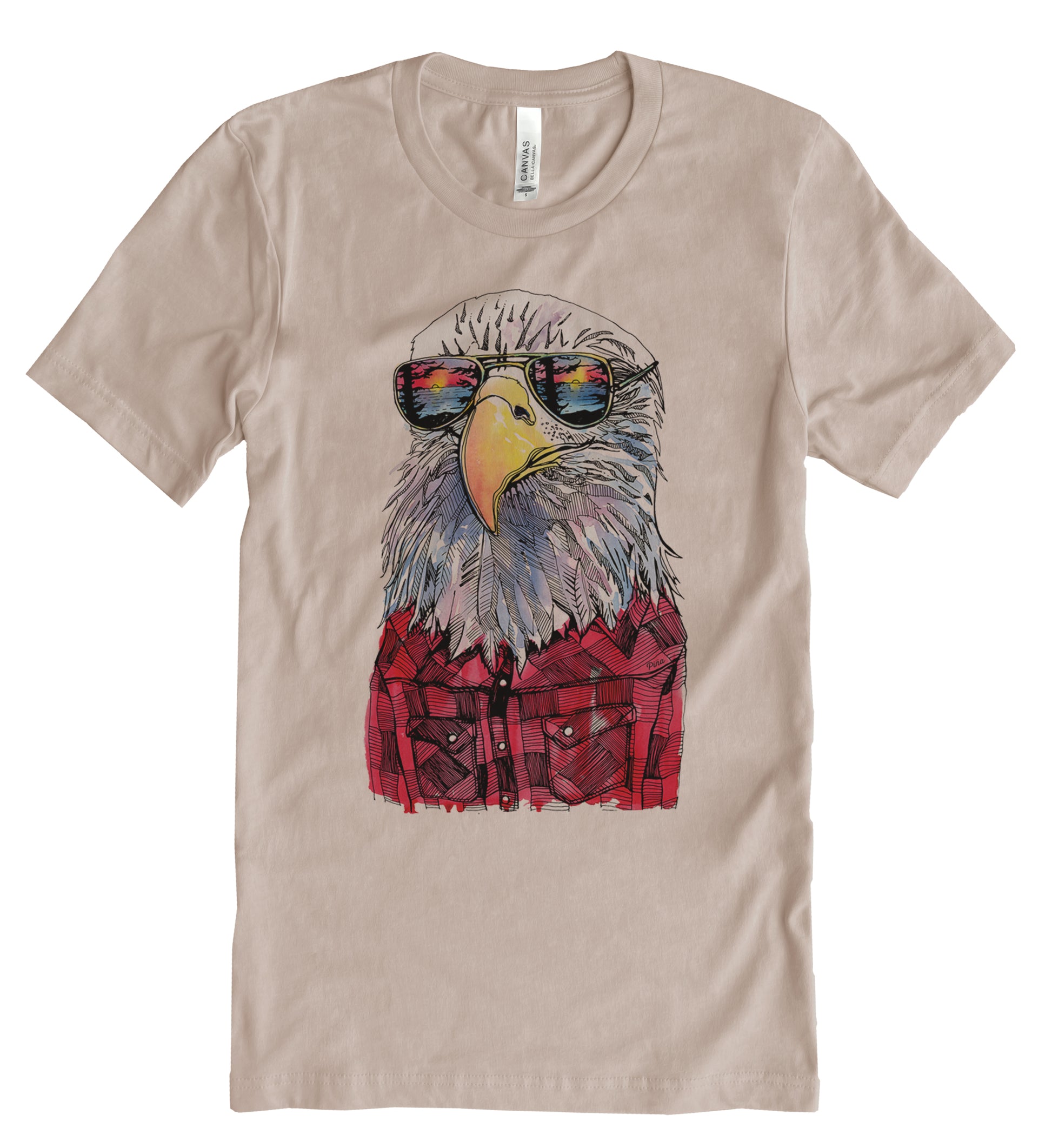 Our classic Hipster Eagle design printed in full colour on the front of a unisex, cotton jersey t-shirt. This king predator wears reflective shades and a classic flannel to stay warm yet cool in the Pacific North West.