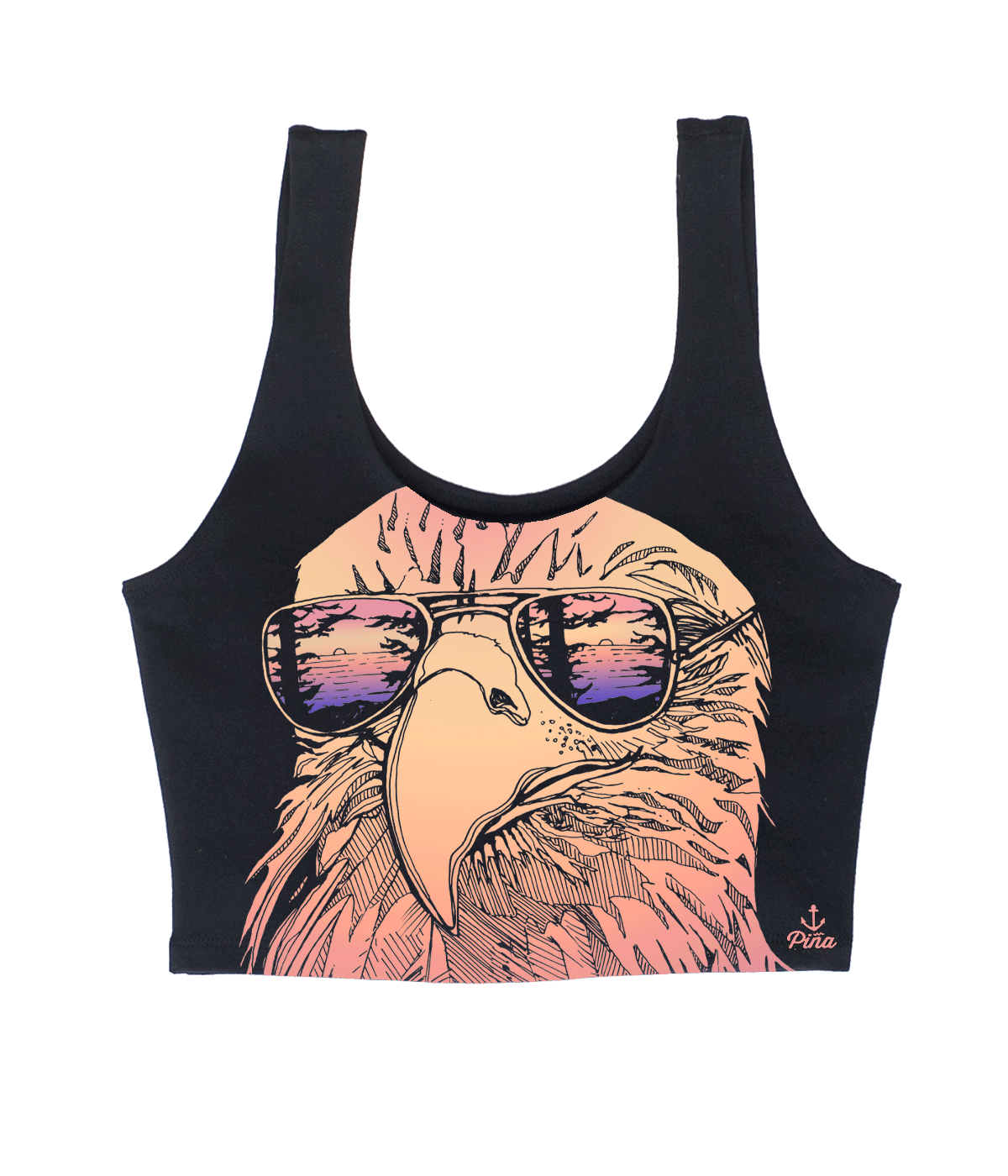 Hipster Eagle in Sunset Gradient Negative Crop Tank