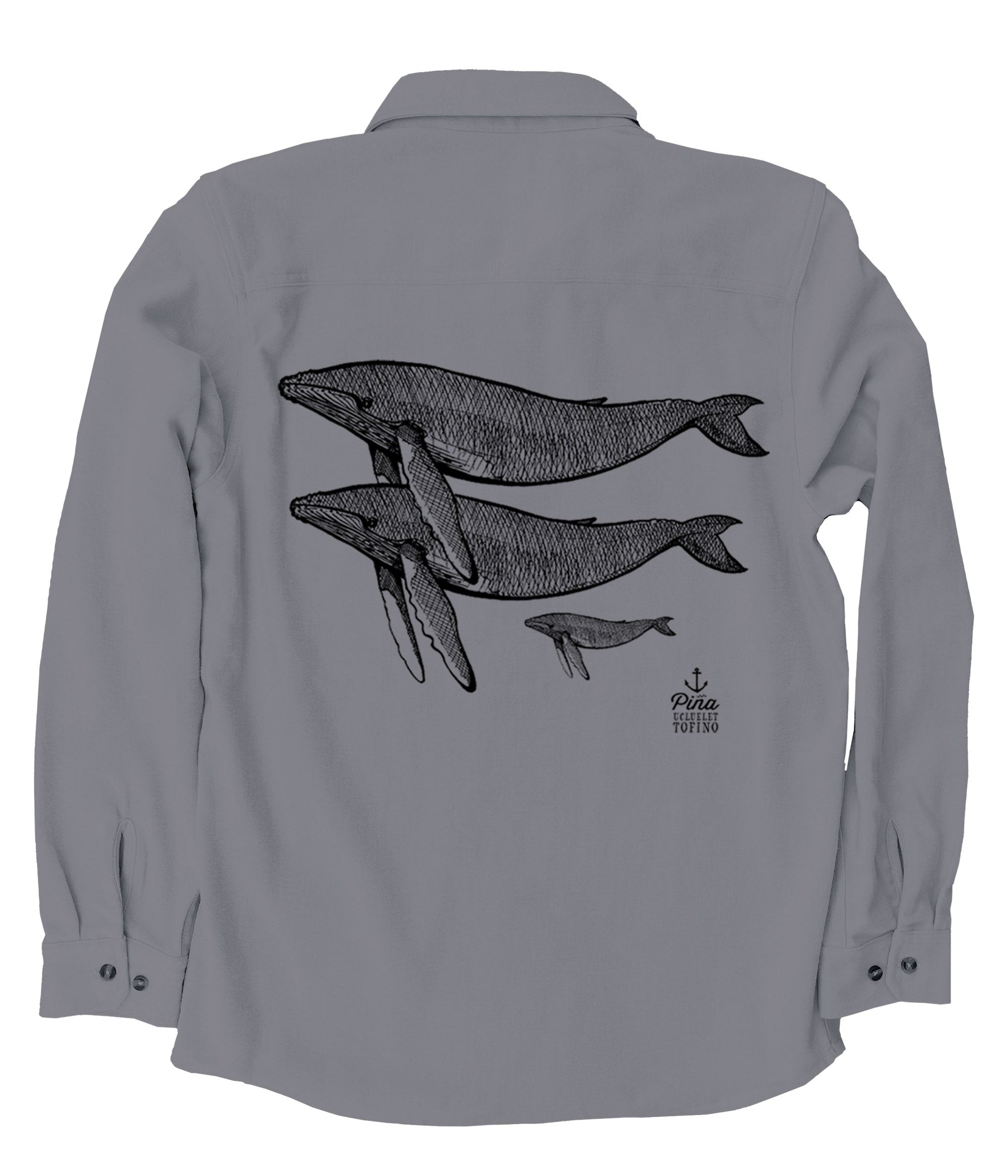 This soft and comfortable organic cotton flannel is printed with our Humpback Fam print. This happy pod is giving strong togetherness vibes.
