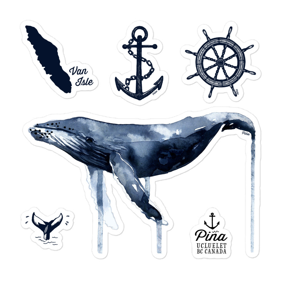 Featuring our beautiful watercolour humpback whale and classic anchor and ship wheel designs, these gorgeous nautical stickers bring ocean vibes to any ol' object!