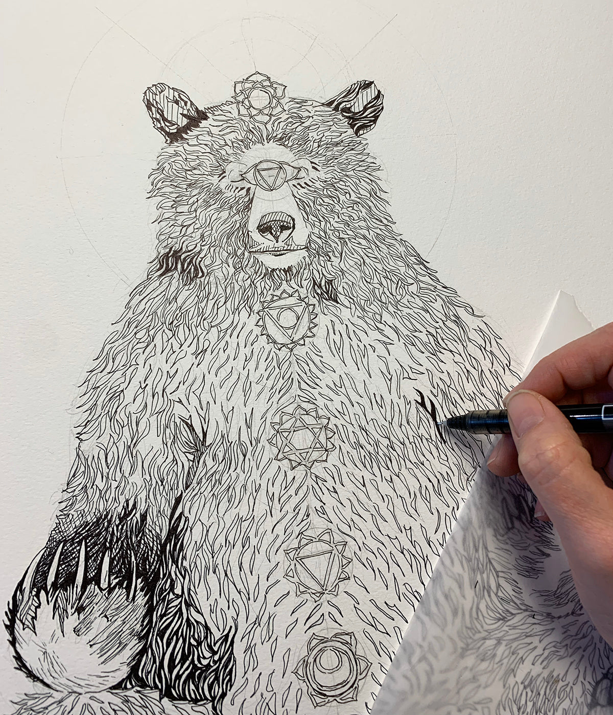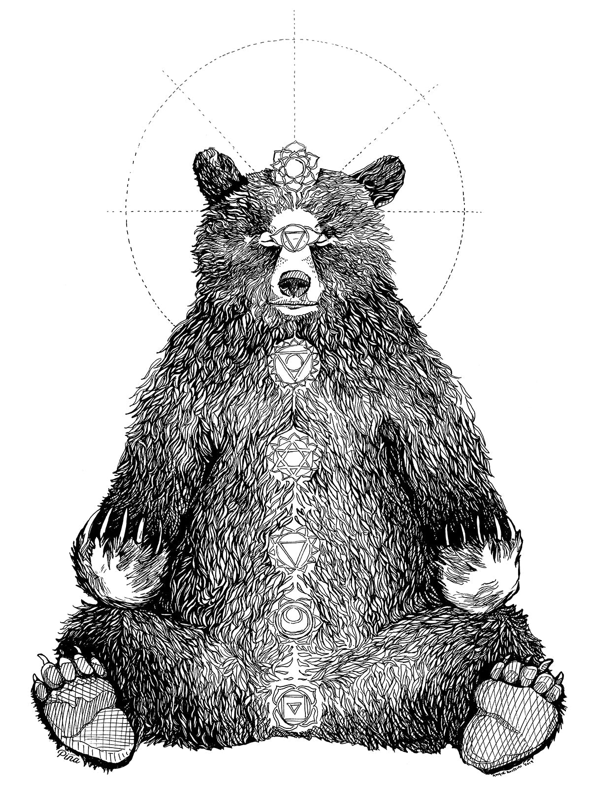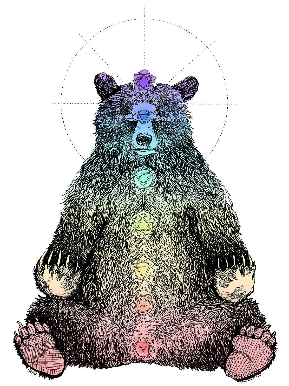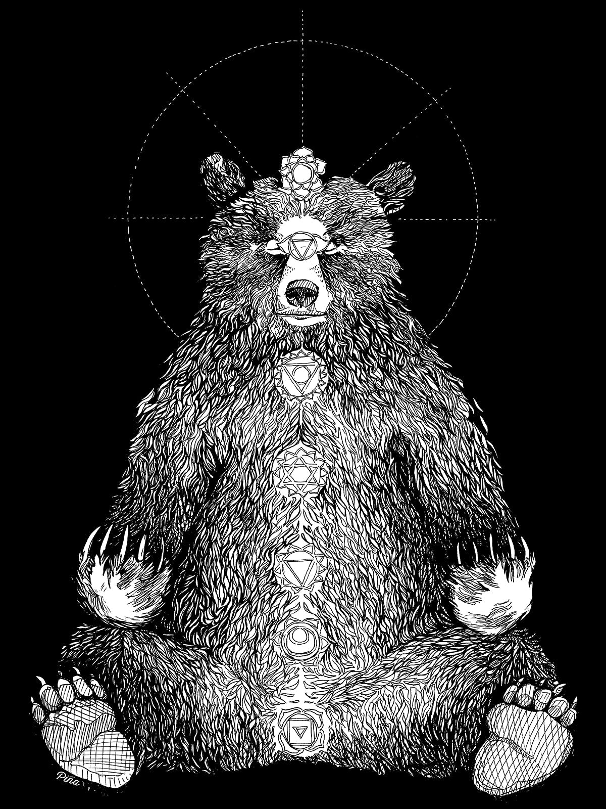 Stay centered with our peaceful Kundalini Bear. This meditating forest friend sits in bliss as he awakens to his full potential of awareness. Each of the seven chakras is drawn in detail.