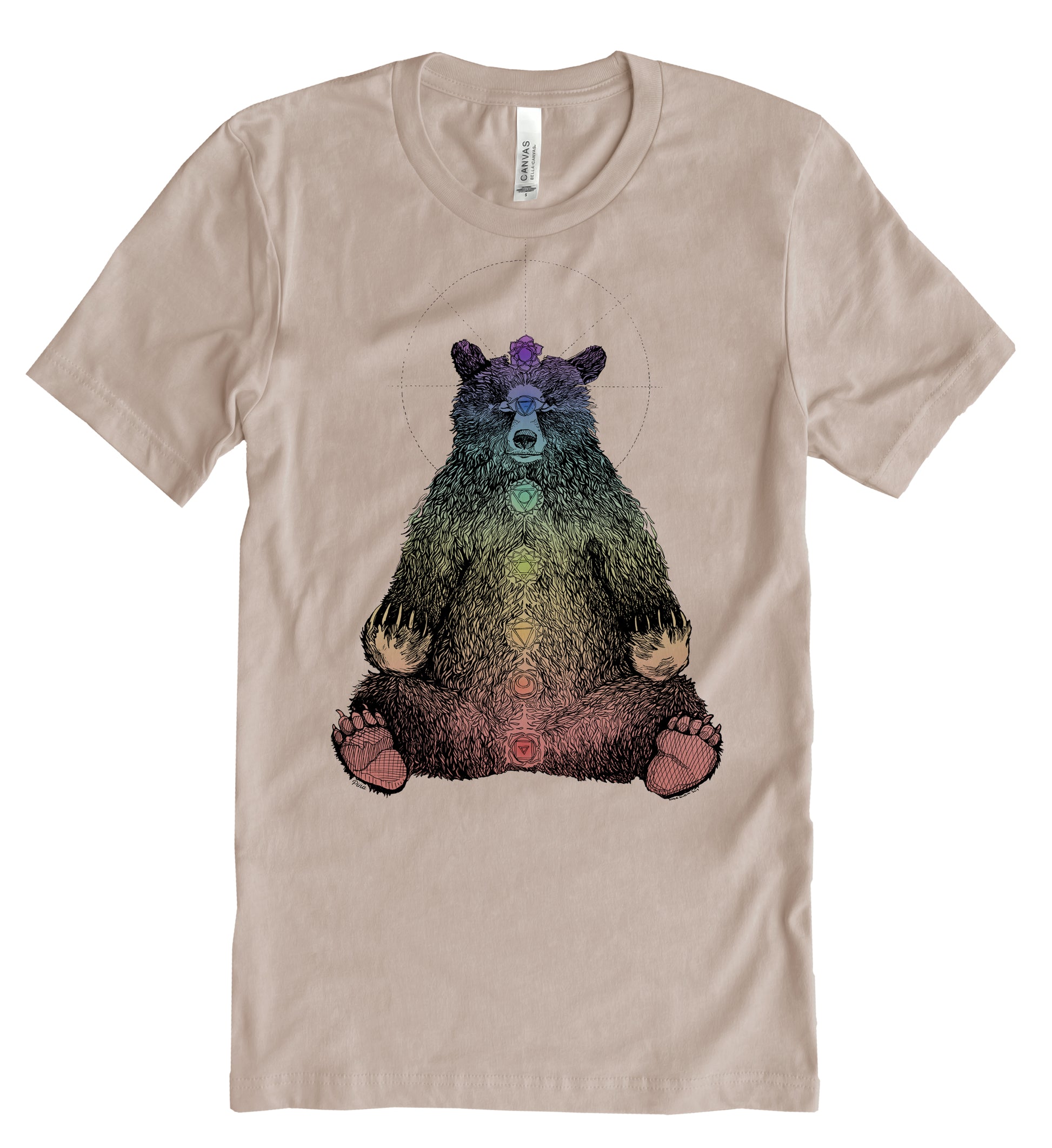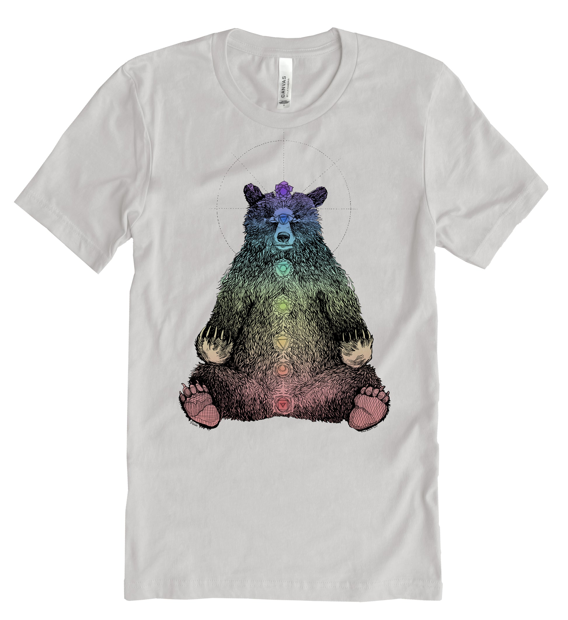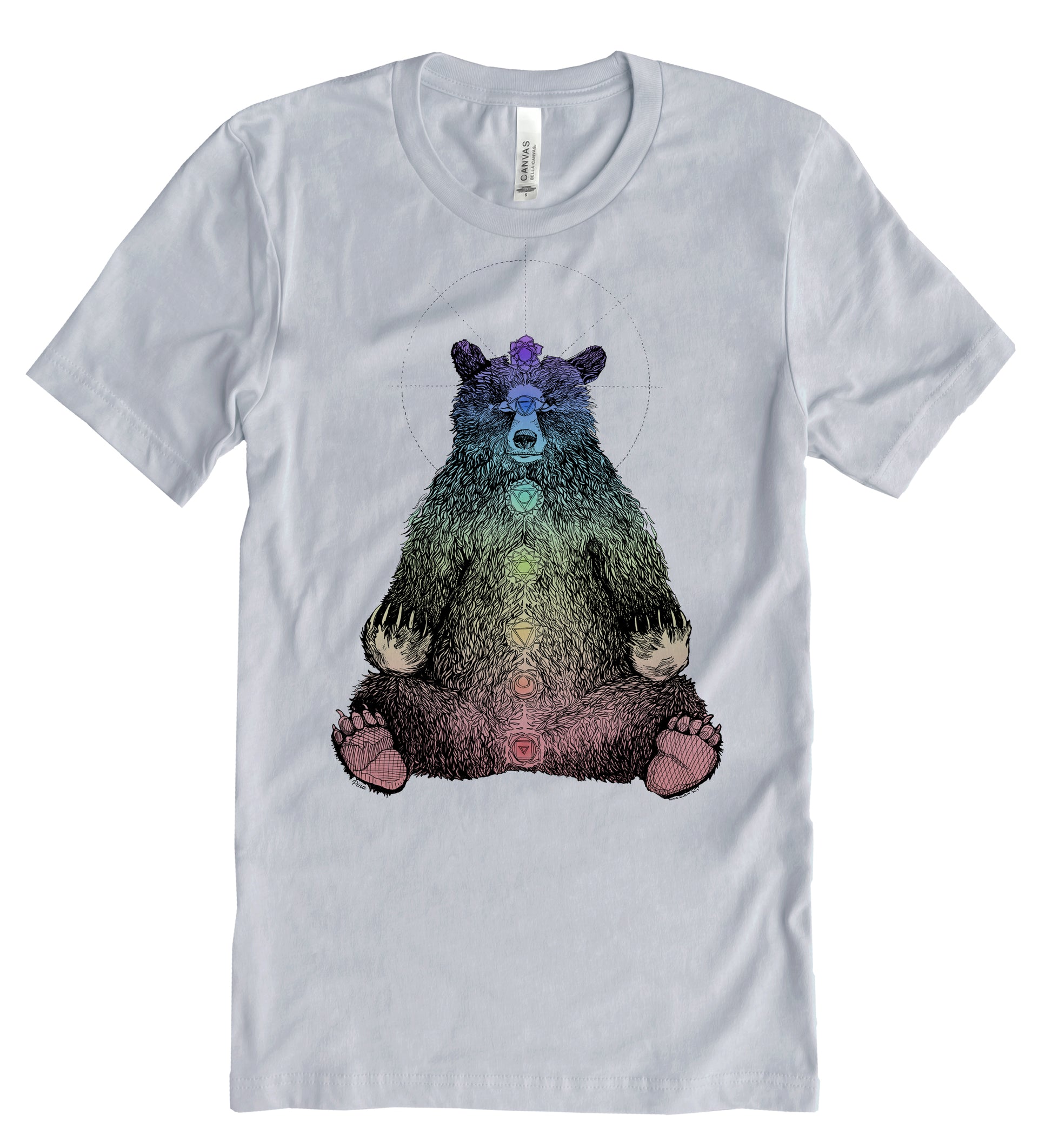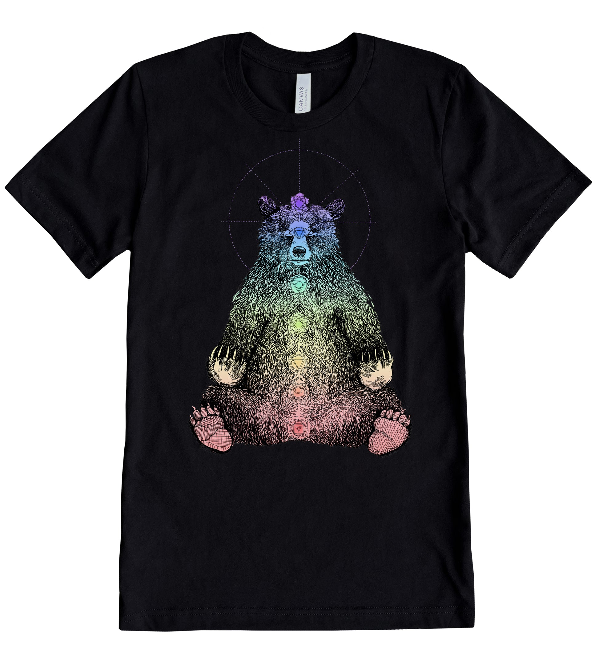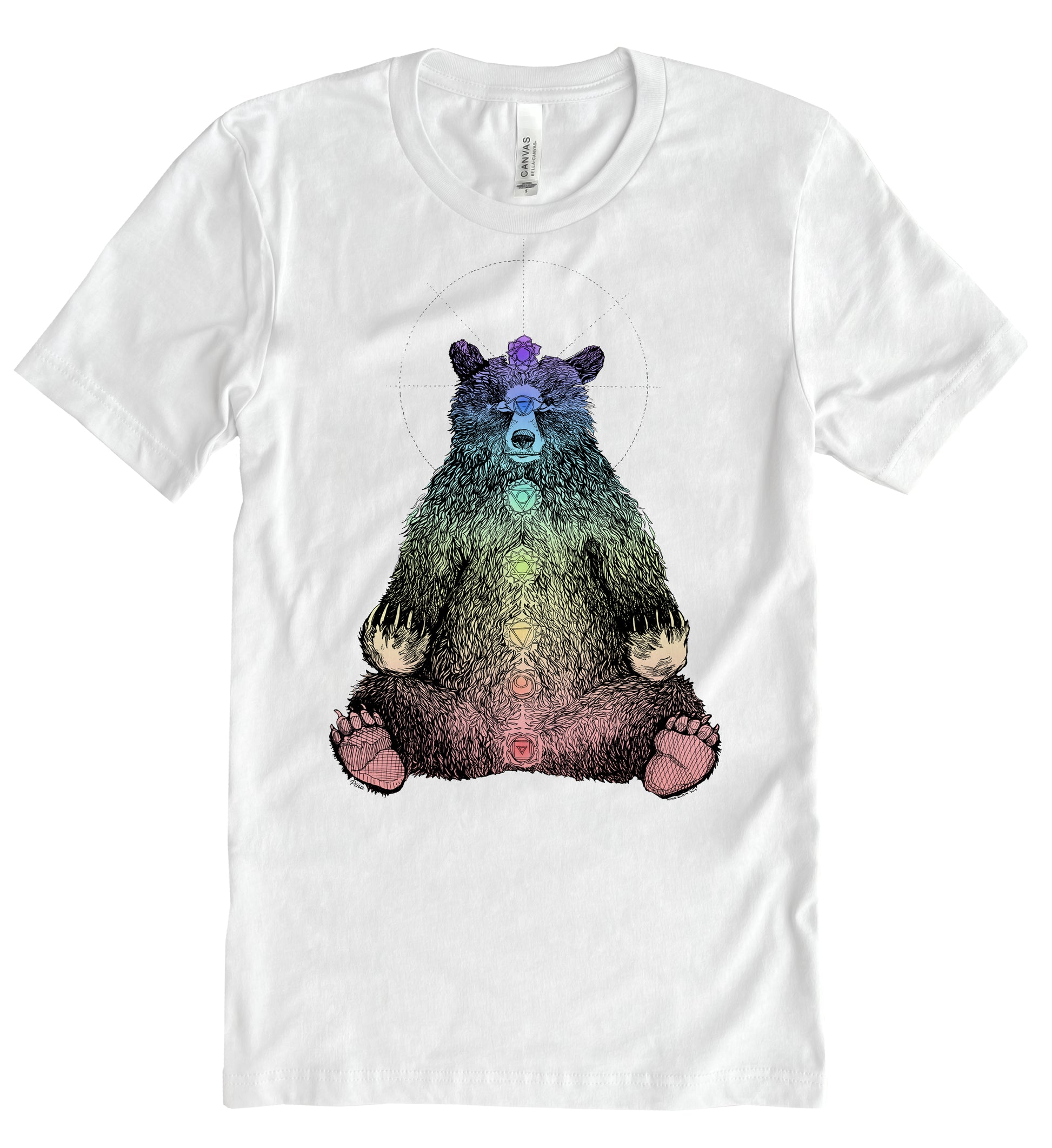 This meditating forest friend sits in bliss as he awakens to his full potential of awareness. Our peaceful Kundalini Bear design printed in full colour on the front of a unisex, cotton jersey t-shirt.