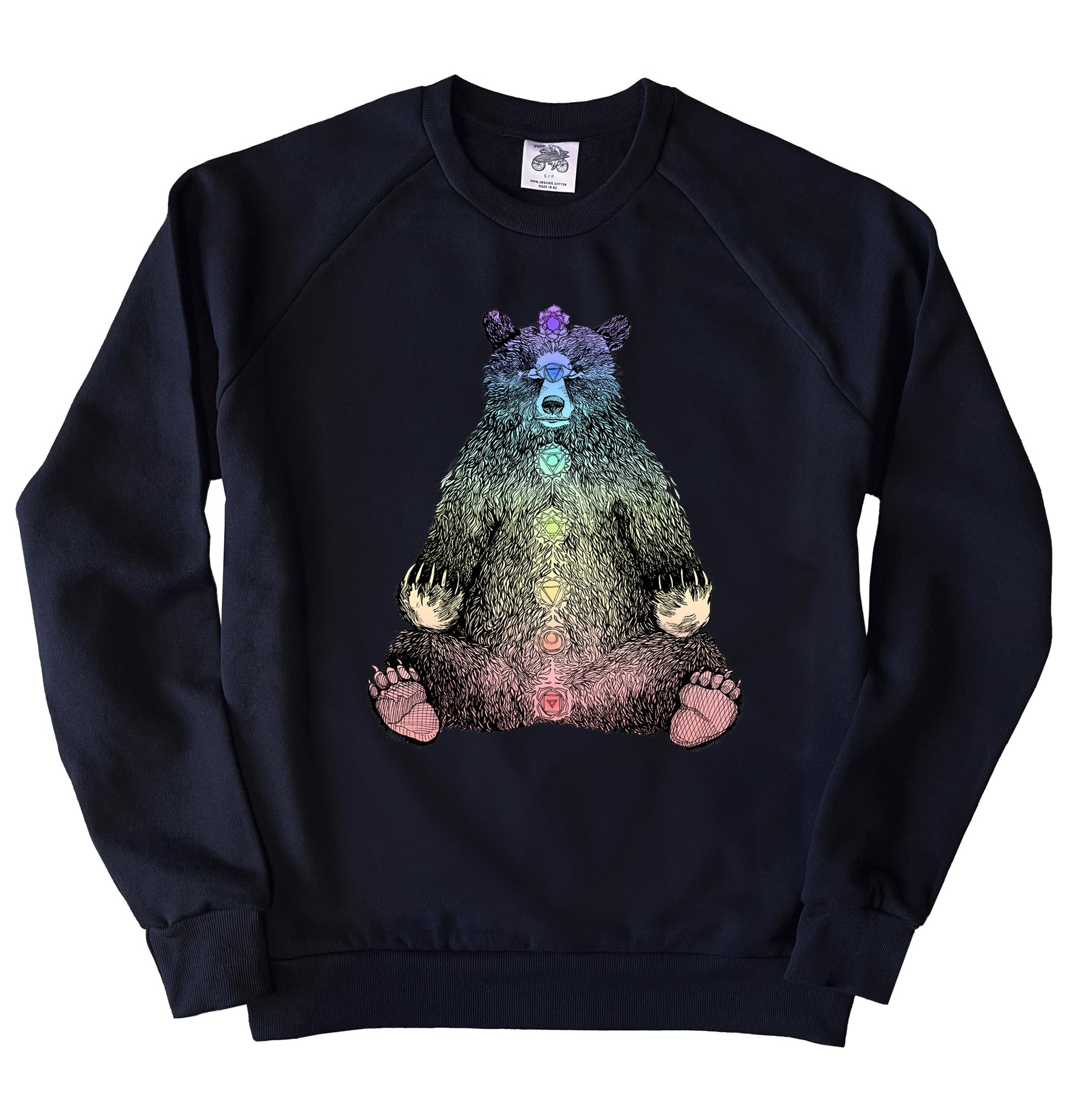 Stay centred with our peaceful Kundalini Bear–printed in full colour on the front of a unisex crewneck sweatshirt.