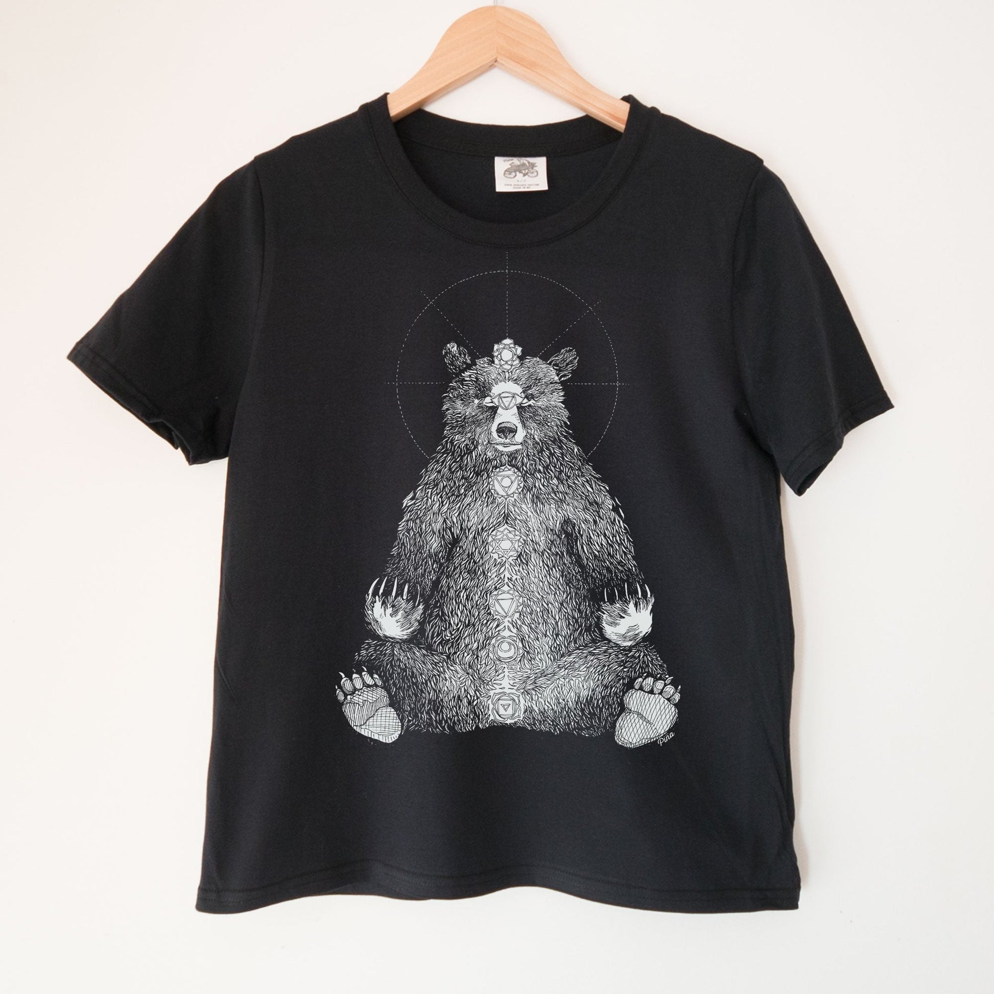 A soft and lightweight ladies boxy tee printed with our detailed Kundalini Bear ink drawing. This meditating forest friend sits in bliss as he awakens to his full potential of awareness. Each of the seven chakras is drawn in detail. Summon your inner yogi with this peaceful print.