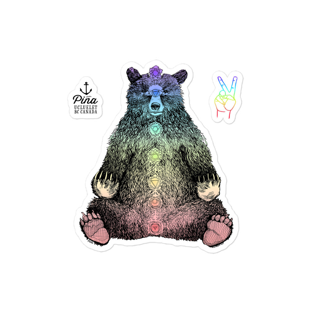 These stickers are printed with our detailed Kundalini Bear design on durable, high opacity adhesive vinyl. This meditating forest friend sits in bliss as he awakens to his full potential of awareness. Each of the seven chakras is drawn in detail. Summon your inner yogi with this peaceful sticker.