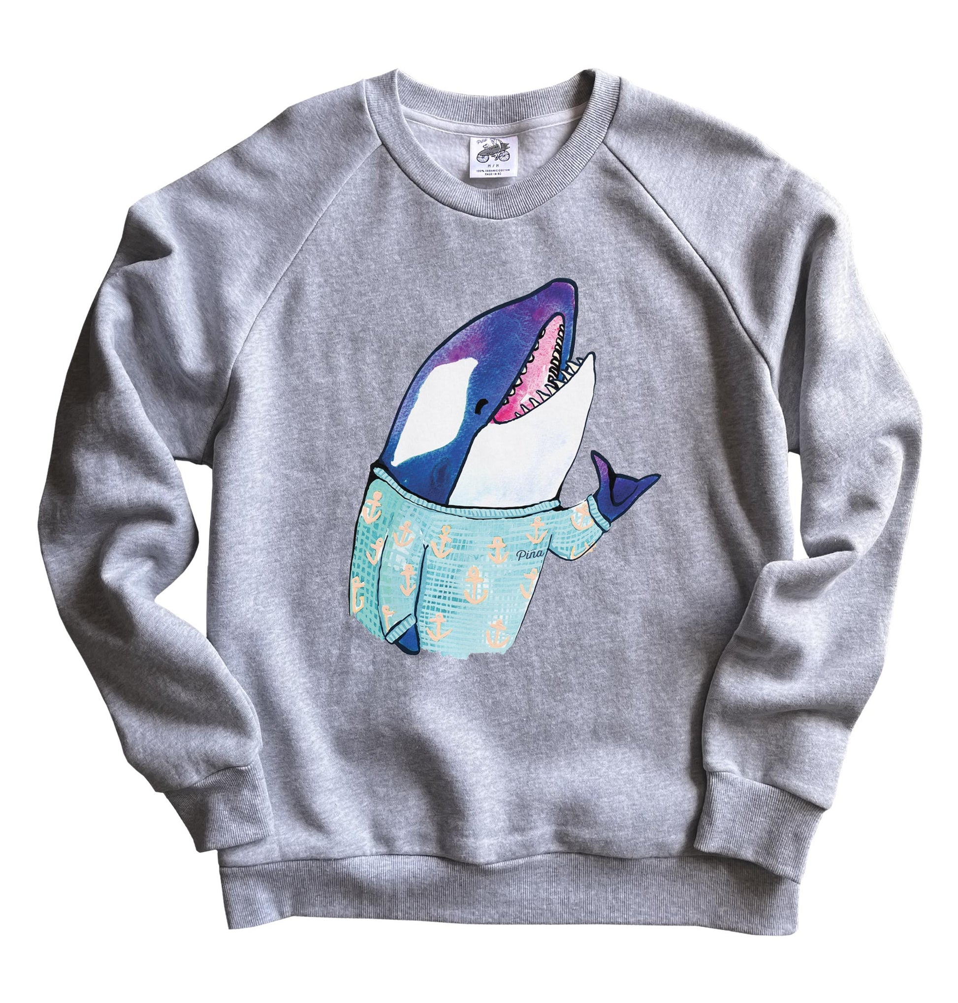 Hang loose with this chiller whale. Our Shaka Brah Orca printed in full colour on the front of a unisex crewneck sweatshirt.