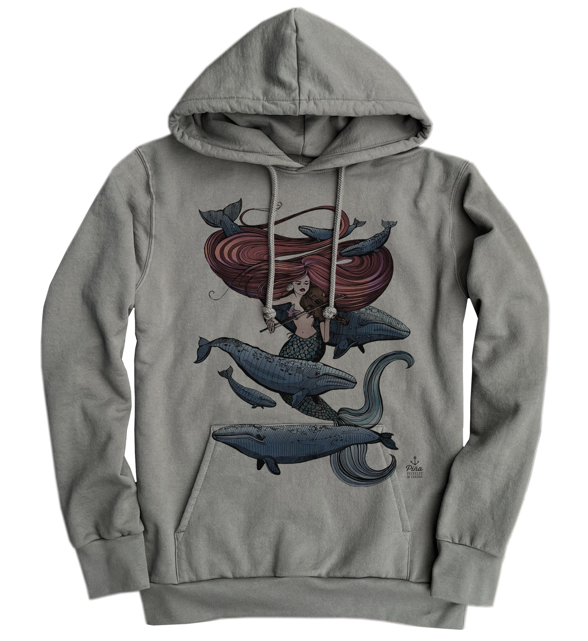 Our Mermaid Fiddling design printed in beautiful, vibrant colour on the front of a soft and comfy organic cotton hoodie.