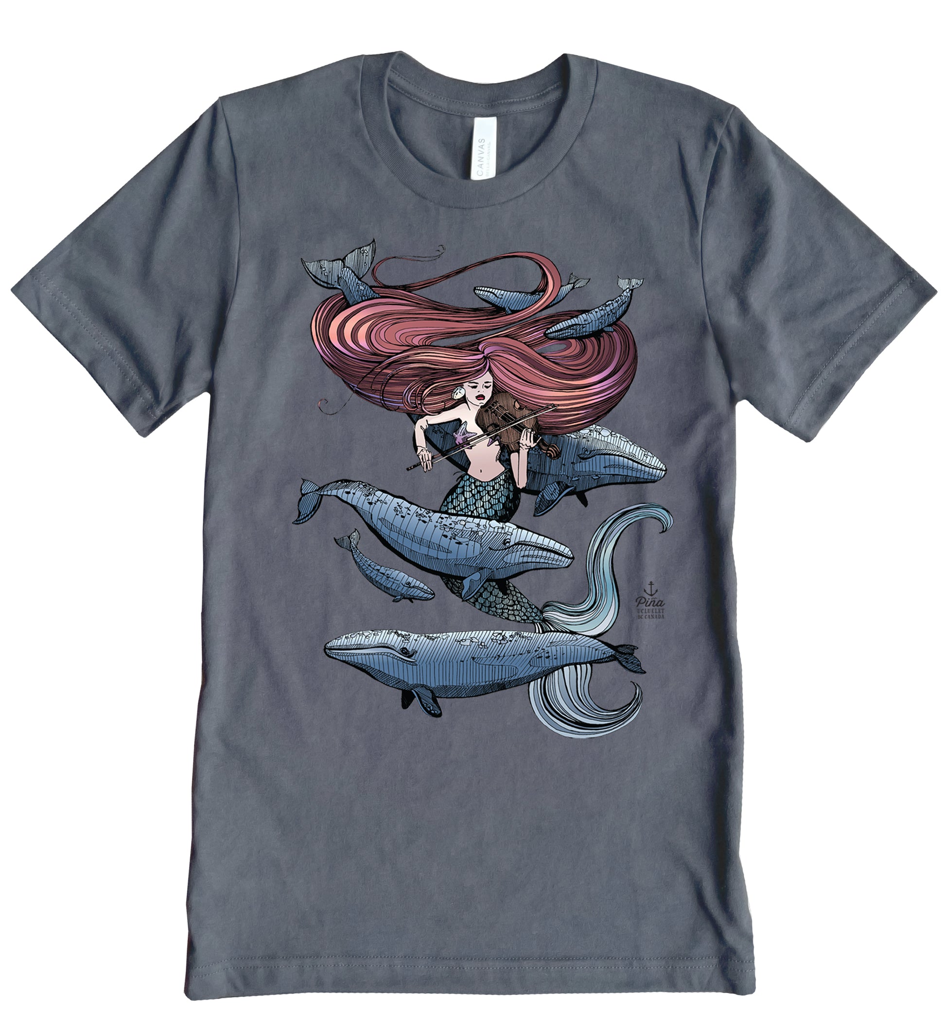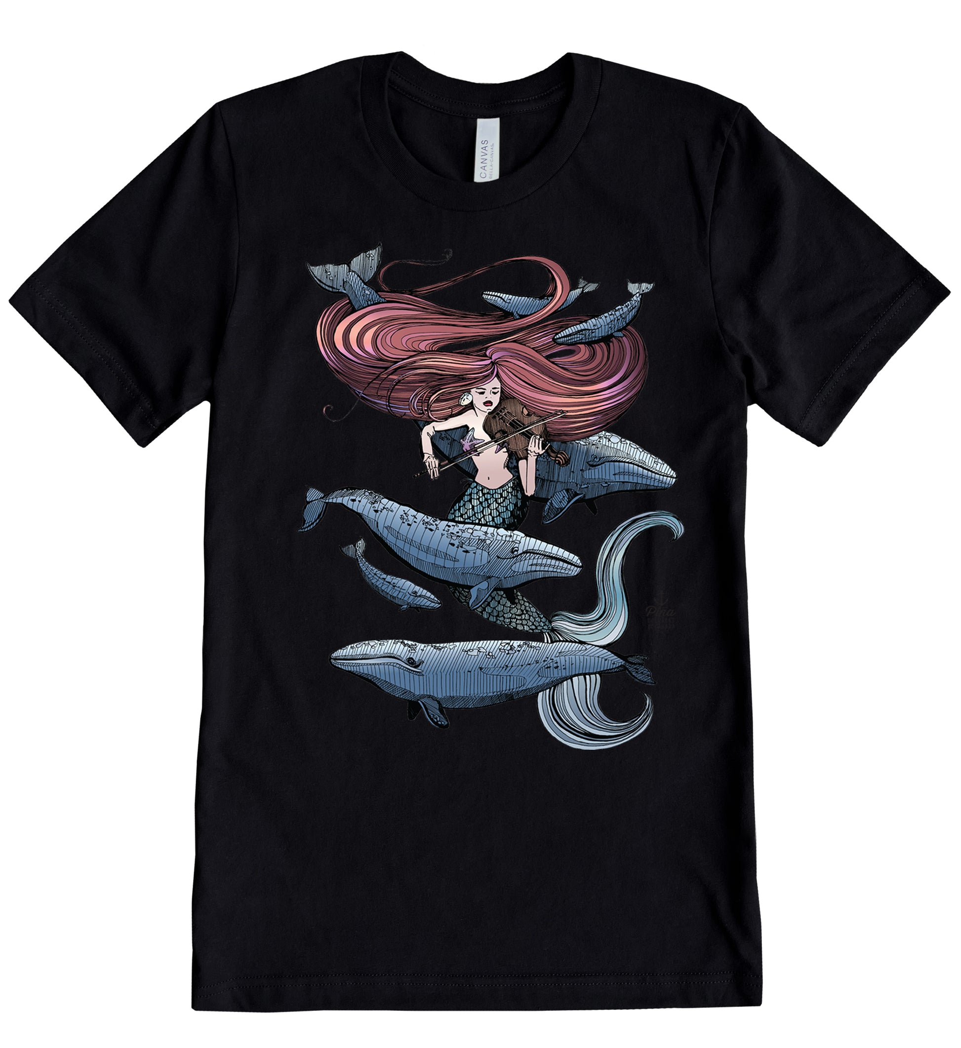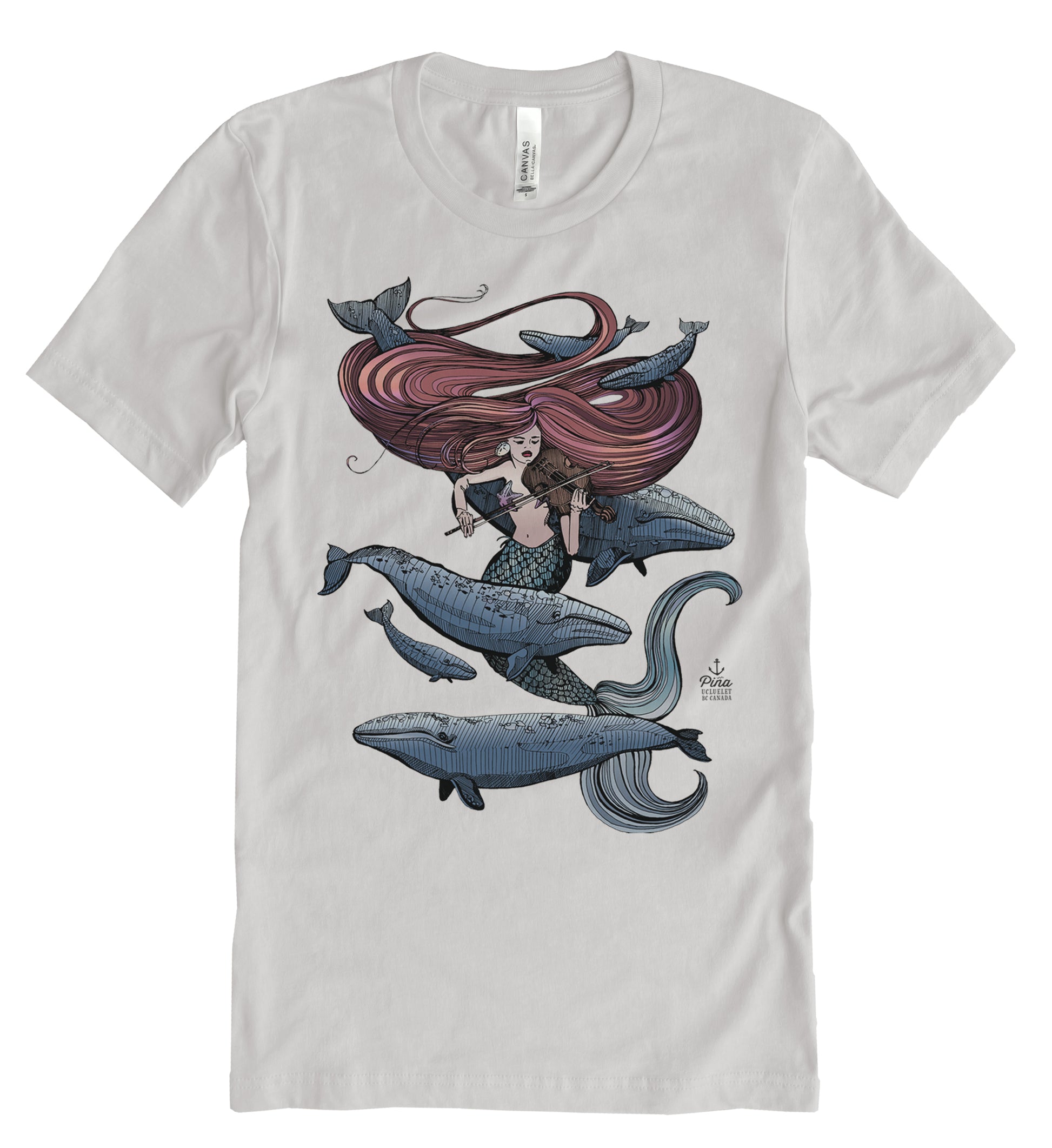 Our Mermaid Fiddling design printed in full colour on the front of a unisex, cotton jersey t-shirt.