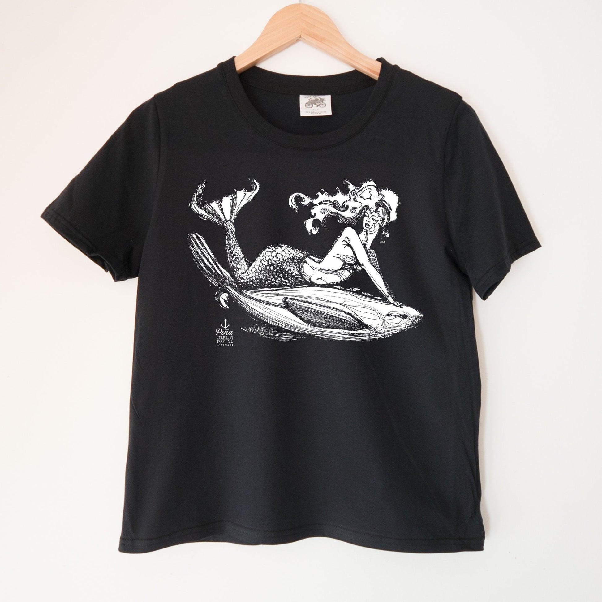 A soft and comfortable organic cotton ladies boxy tee printed with our Mermaid Sealion design. Mermaids love dogs too!