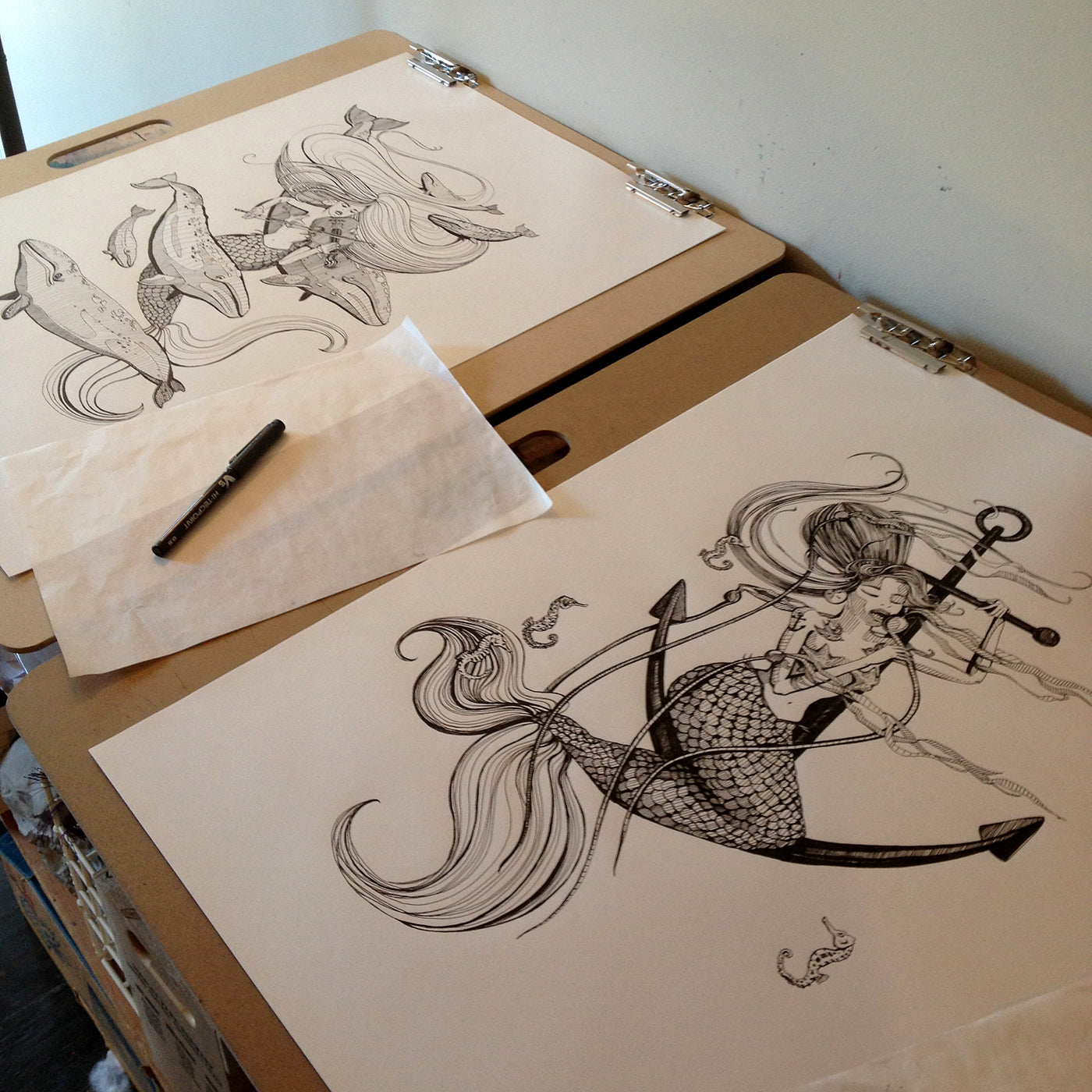 Printed with our beautiful Singing Mermaid design. This sexy siren dazzles as she swings on an anchor to the rhythm of the swaying bull kelp. Sweet seahorses gather round to hear the siren's song.