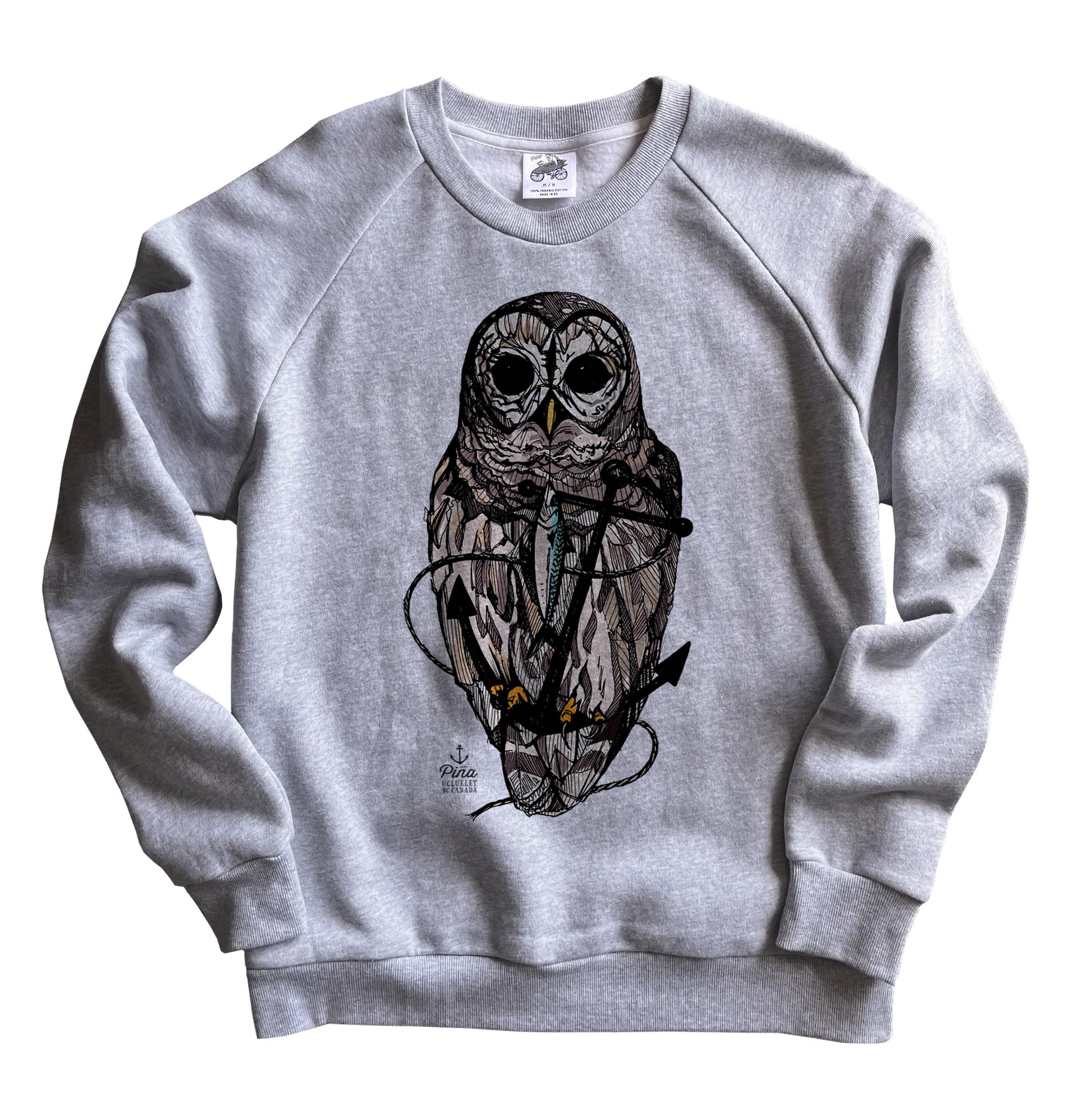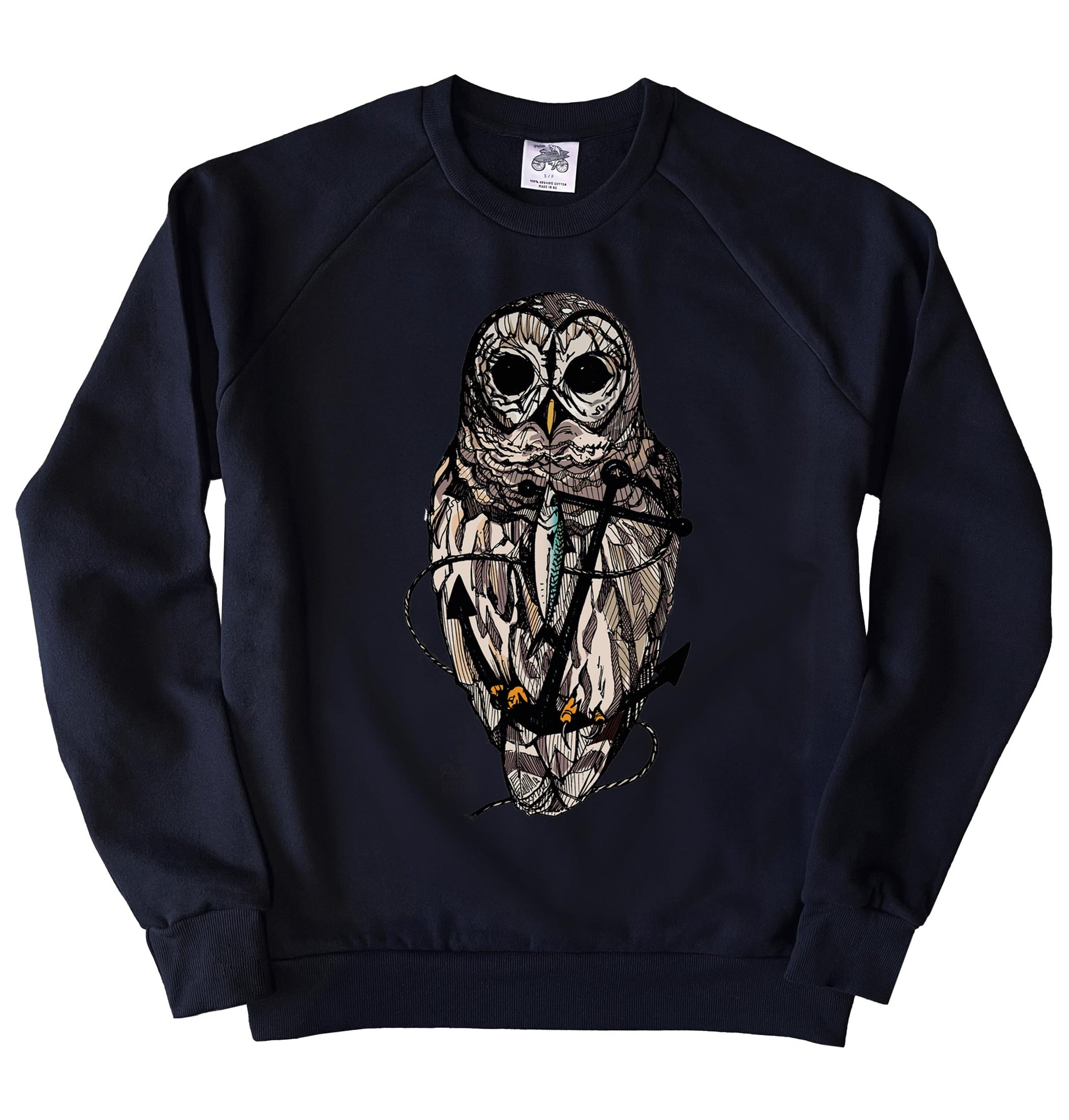 Our Owl and Anchor design printed in full colour on the front of our unisex crewneck sweatshirt.