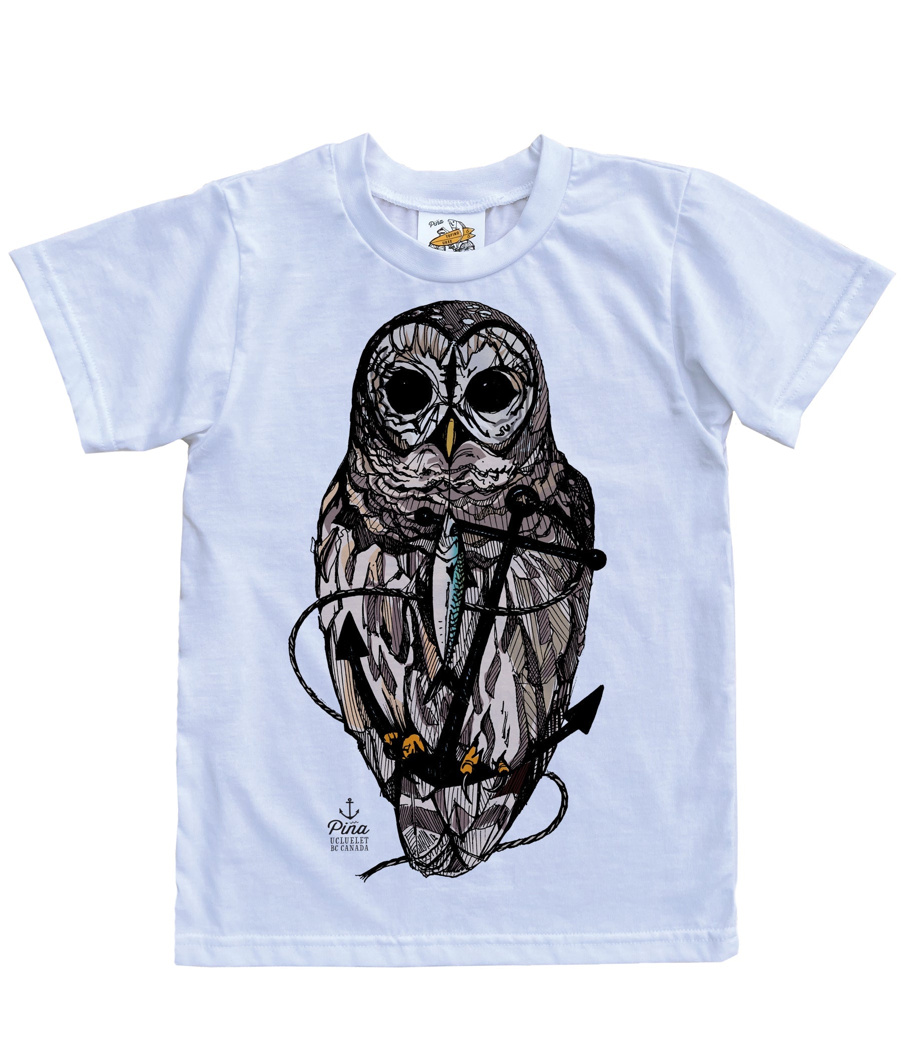 Our Owl & Anchor design printed on a organic cotton kids tee.