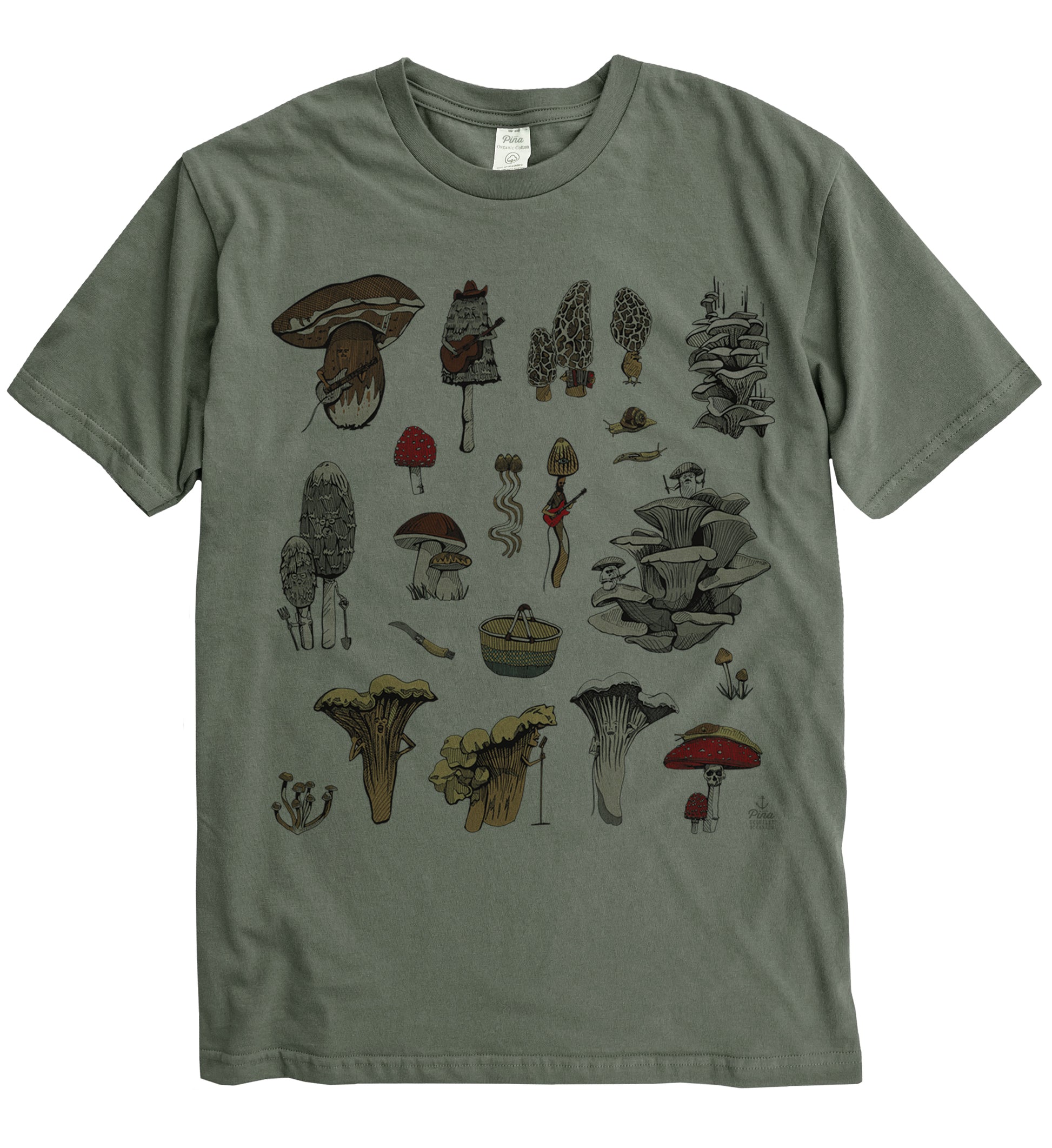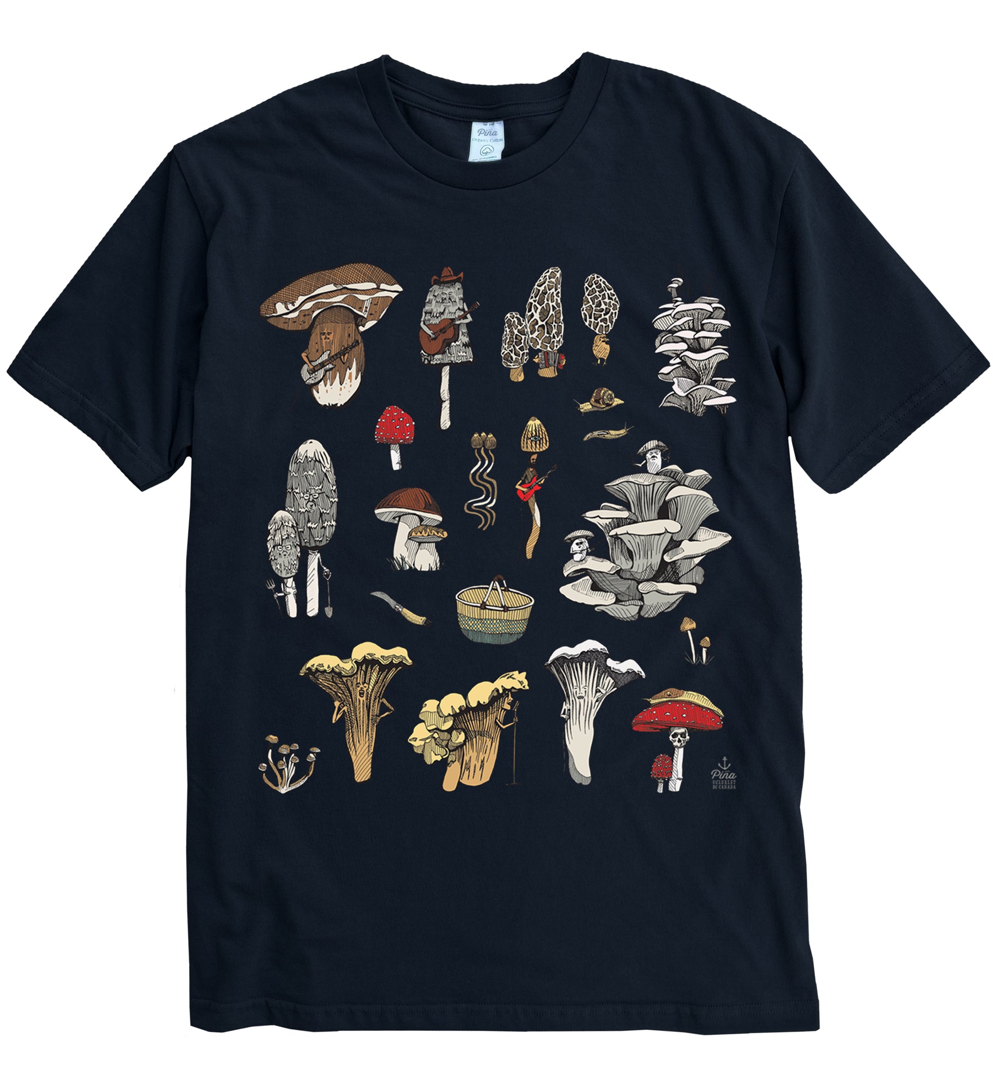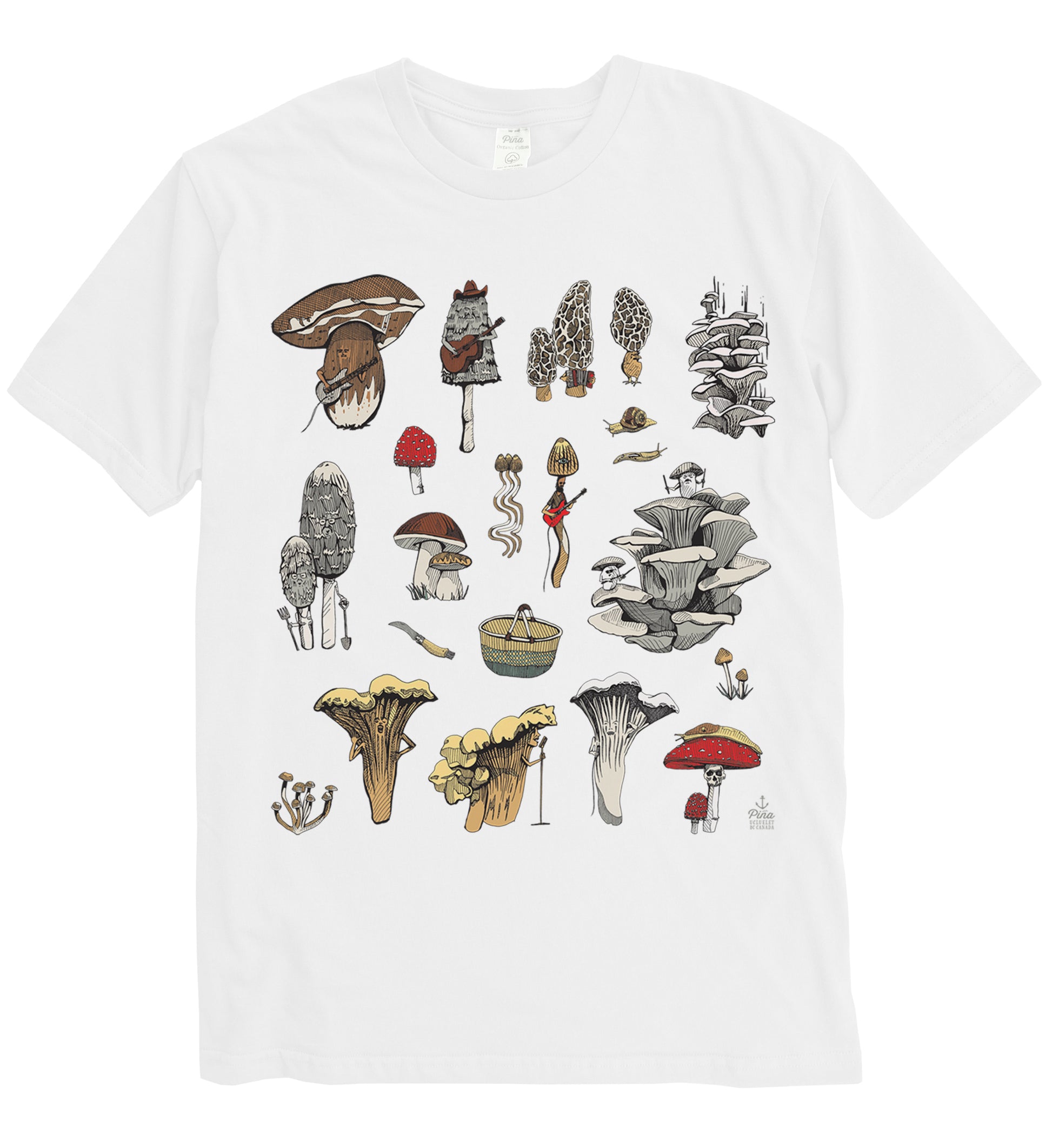 Our PNW Mushrooms design printed in full colour on the front of a 100% organic cotton unisex tee. This crewneck t-shirt is soft and comfortable with a flattering fit. Each shirt is made in Canada then custom printed by us in Ucluelet, just for you!