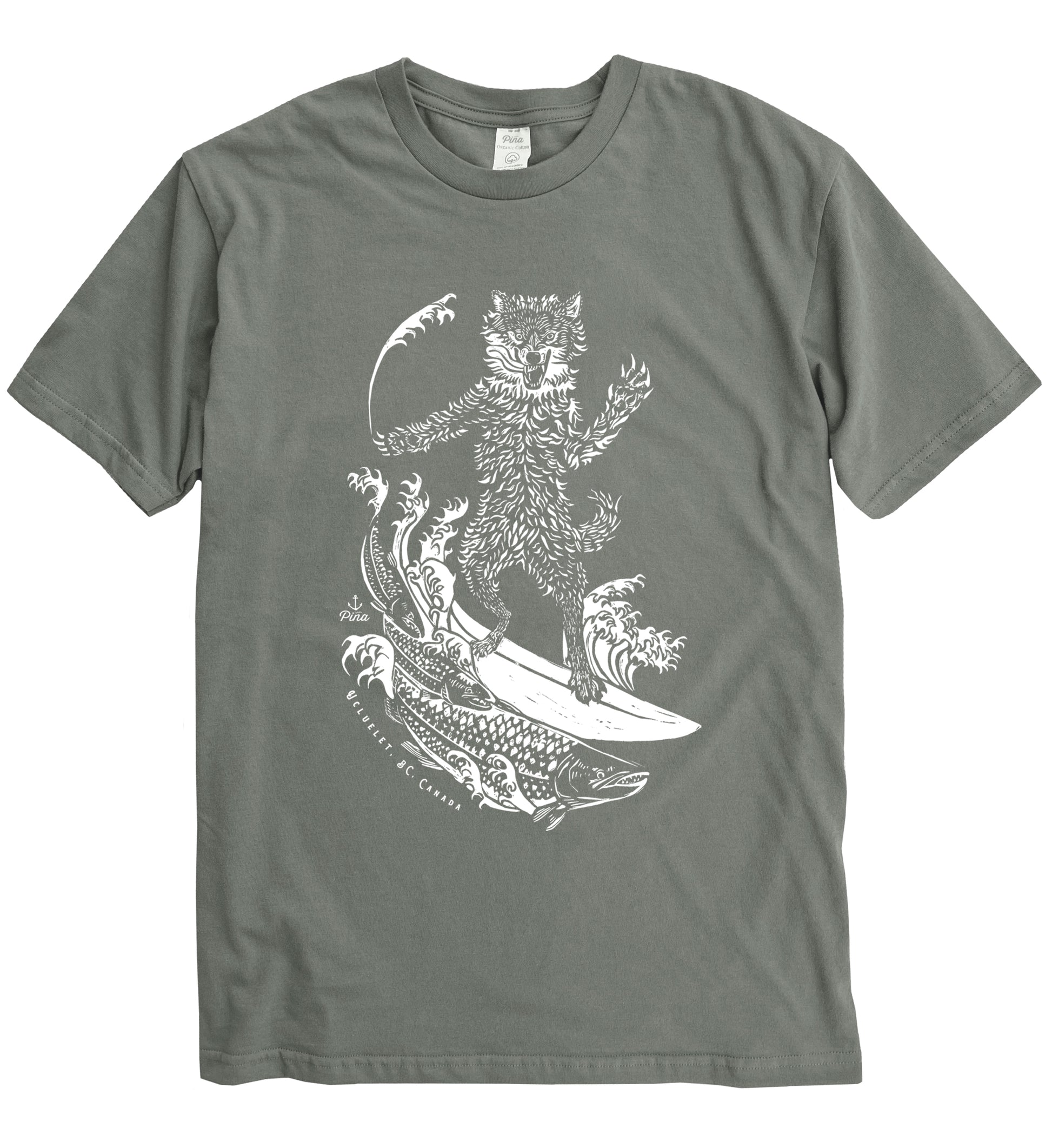 Our Seawolf design printed in white ink on the front of a 100% organic cotton unisex tee. This crewneck t-shirt is soft and comfortable with a flattering fit. Each shirt is made in Canada then custom printed by us in Ucluelet, just for you!