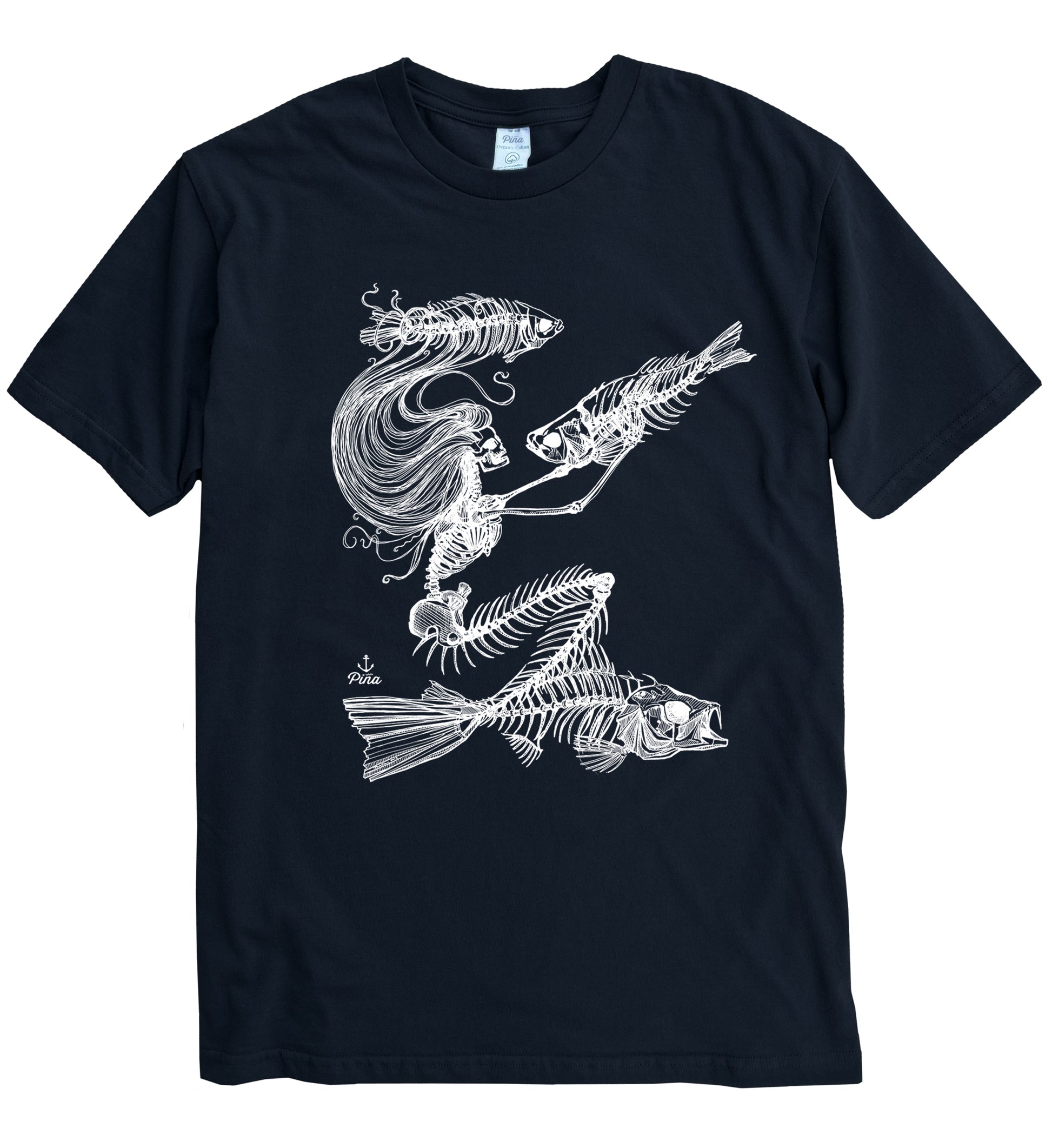 Skeleton Mermaid in White Ink Organic Cotton Unisex Tee