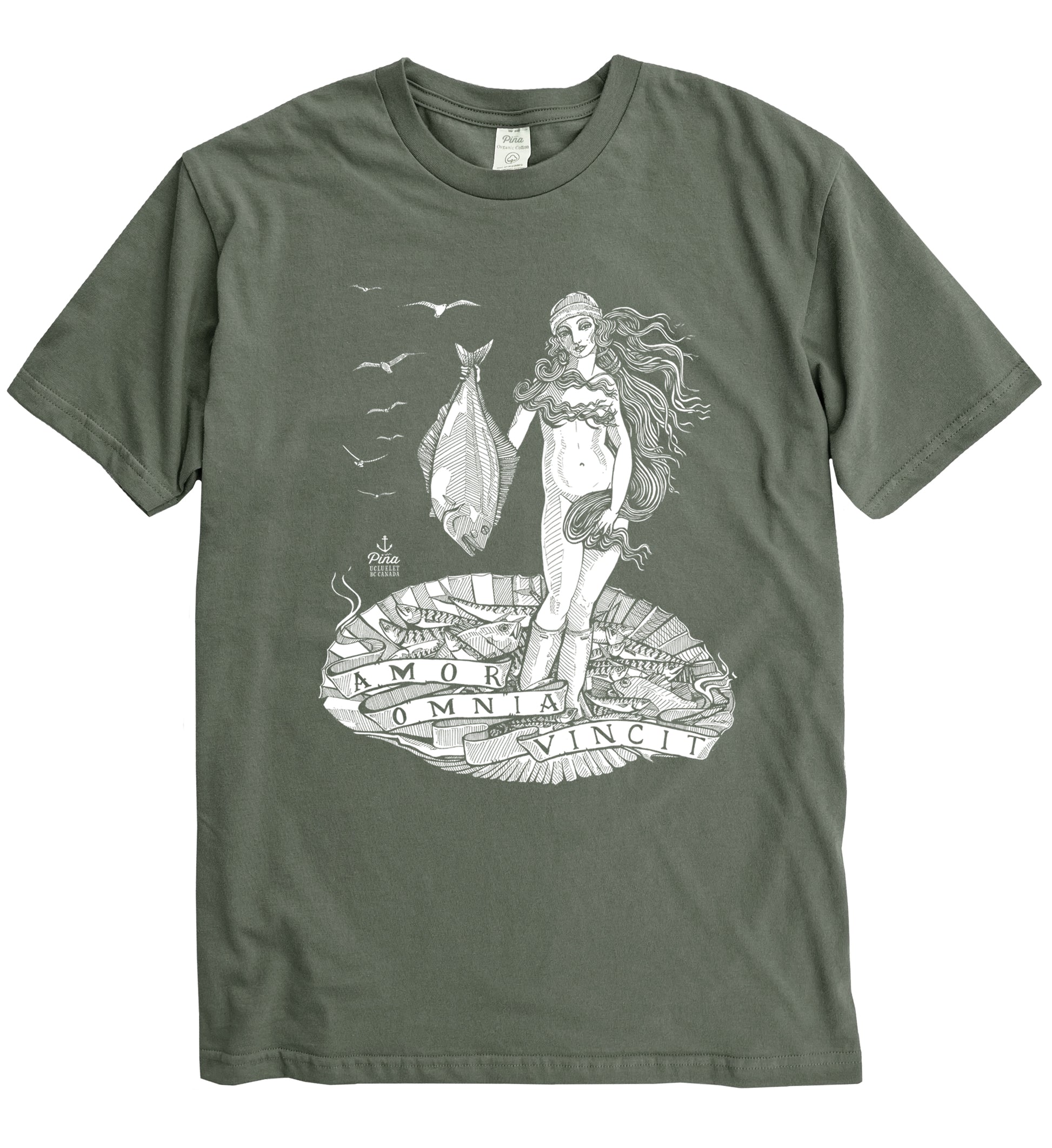 Our Birth of Venus–Westcoast Style design printed in white ink on the front of a 100% organic cotton unisex tee. This crewneck t-shirt is soft and comfortable with a flattering fit. Each shirt is made in Canada then custom printed by us in Ucluelet, just for you!