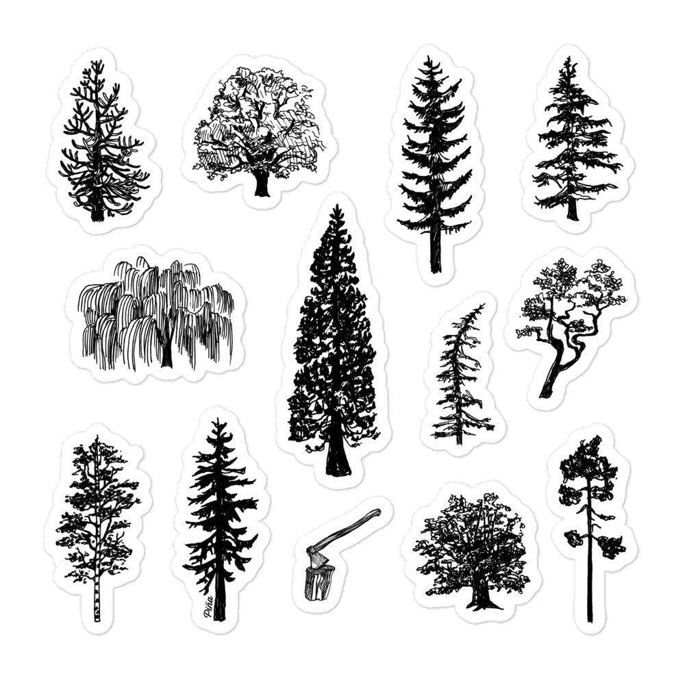 A 5.5" x 5.5" sticker sheet with some happy little trees. These sketches capture the essence of some of our favourite tree species from the Pacific Northwest–from the grand sequoia to the unique arbutus to the ever popular cedar, even including the fire wood!