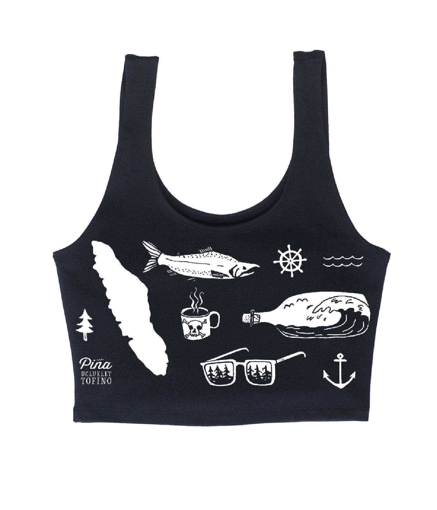 This Piña crop tank is perfect for oversized or peek-a-boo tops, and looks amazing on its own, paired with a high-waisted skirt or shorts. Designed by us at Piña and manufactured in small runs in Vancouver, each garment is created with care then printed with love!