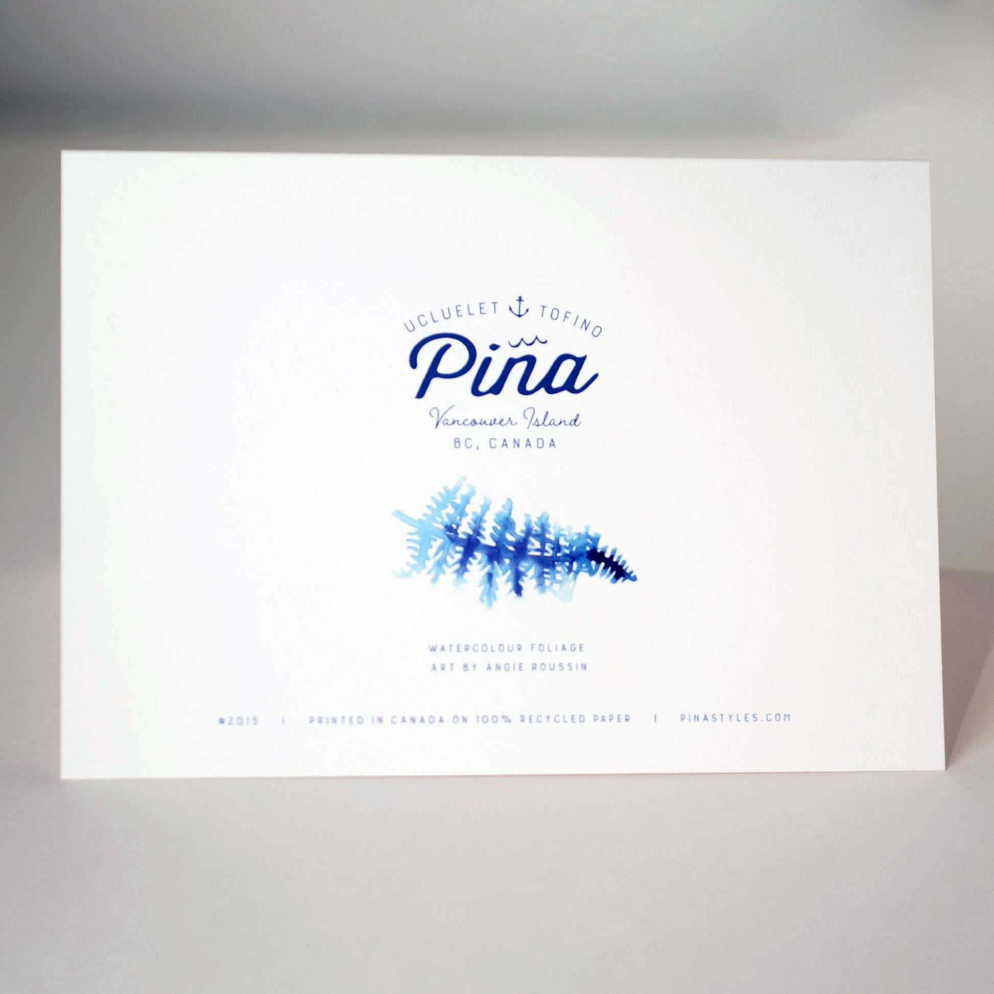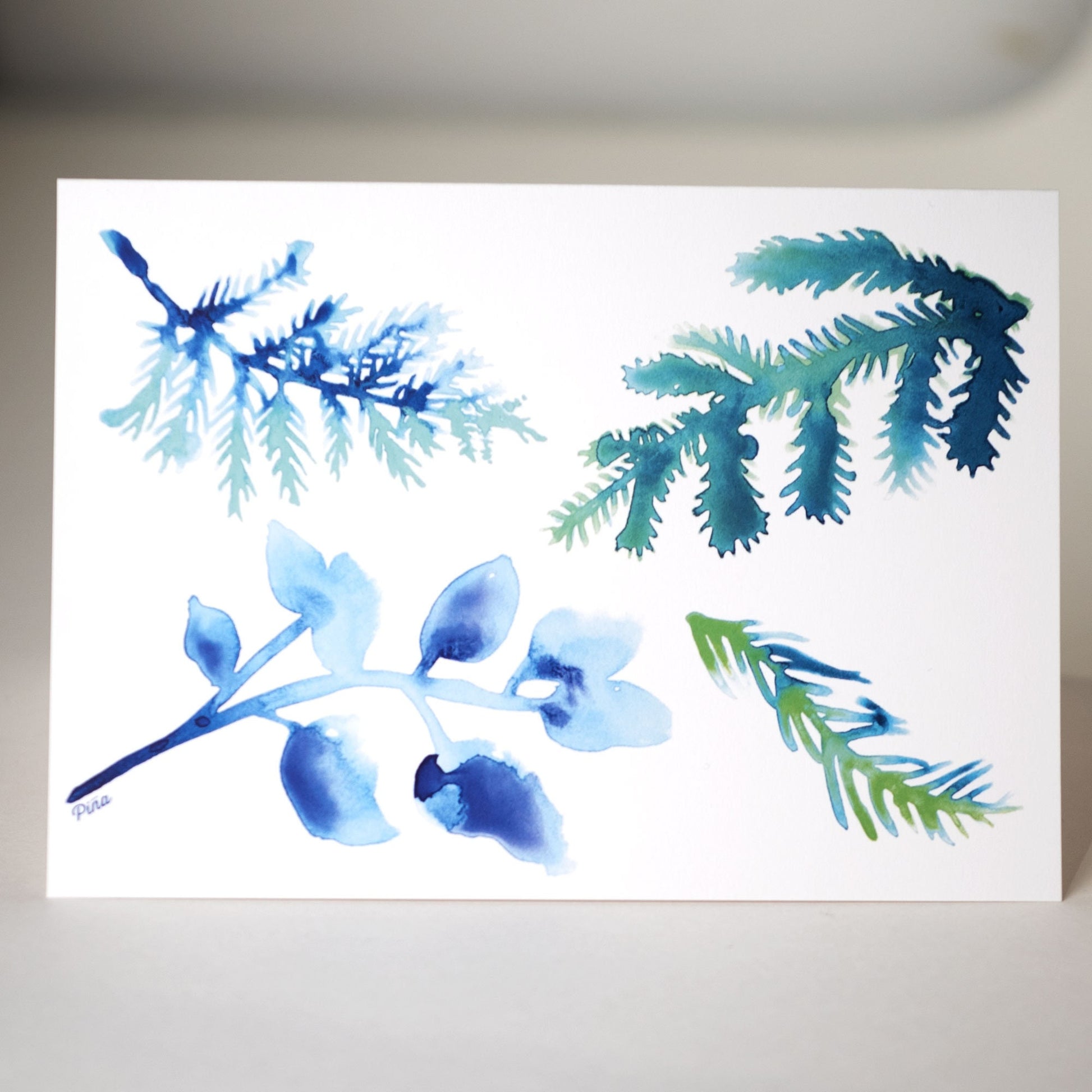 This greeting card features watercolour paintings of some favourite west coast flora including spruce, cedar, pine and salal.