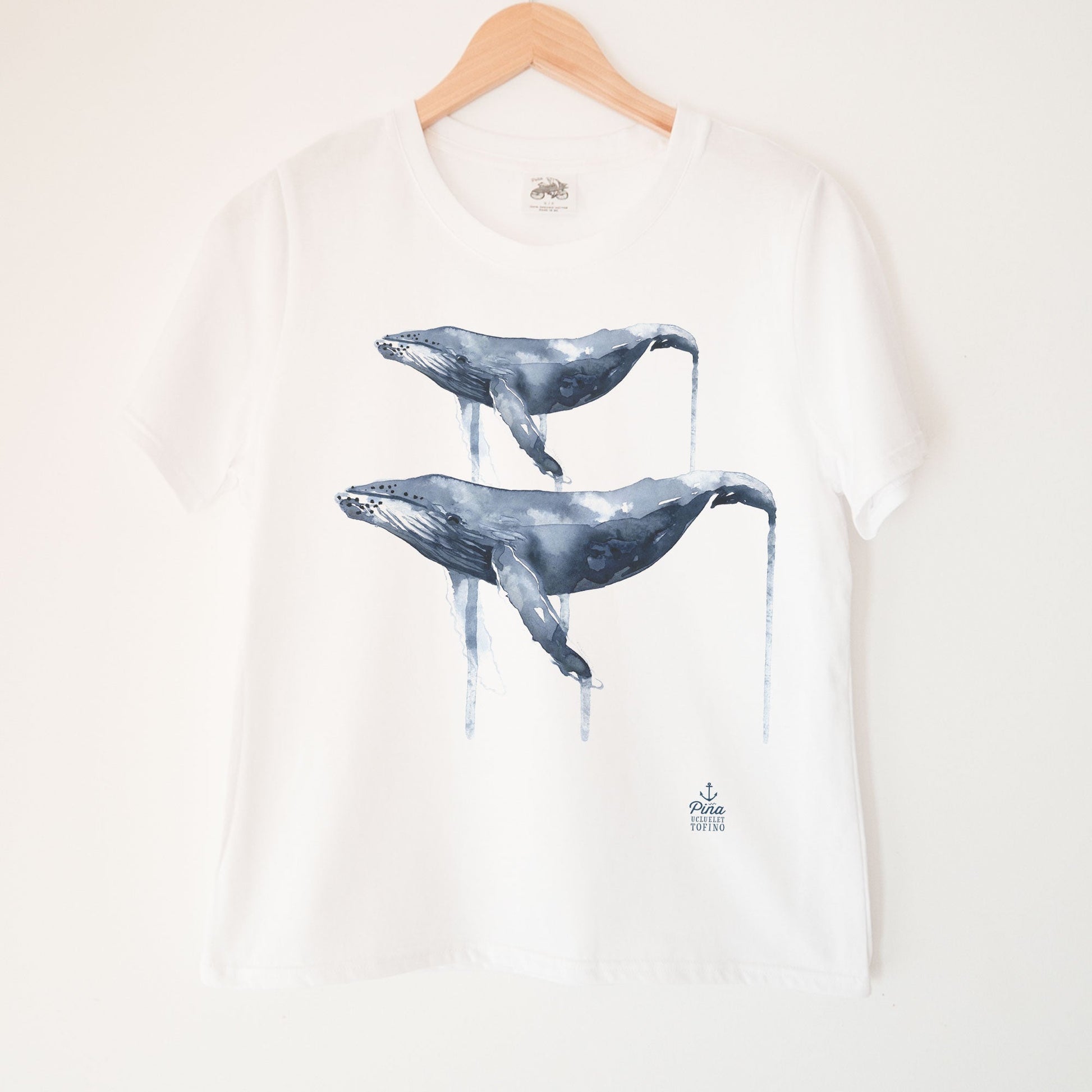 This soft and comfortable organic cotton ladies boxy tee is printed with our Watercolour Humpbacks print, featuring two humpback whales showing off their drip and giving togetherness vibes.